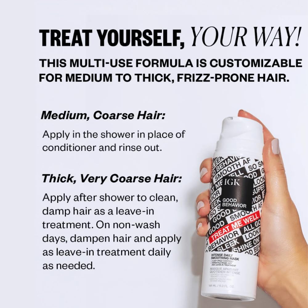 IGK GOOD BEHAVIOR Intense Daily Smoothing Mask | Vegan + Cruelty Free | 5 Oz