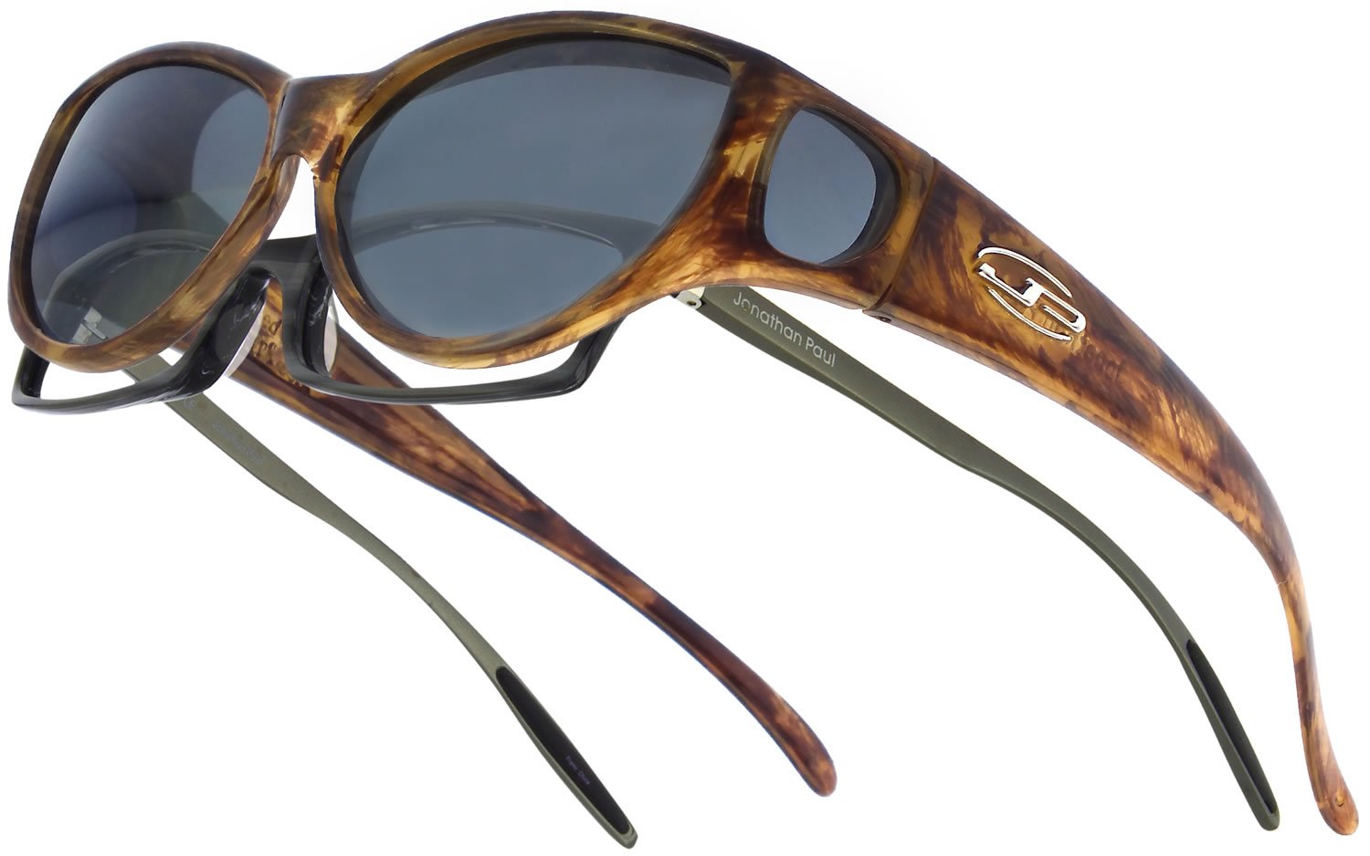 The Ikara Collection by Jonathan Paul Fitovers is one of our 25 fitover sunglass collections uniquely designed to fit over your prescription glasses. Not only do these feature Crystal Nylon wrap-around fitover sunglasses frames for complete coverage, they also contain Polarvue lens technology offering 100% protection from the sun's harmful UVA/UVB rays. Fitovers Sunglasses are impact-resistant and stylized to hide your glasses, making it appear that you are wearing only sunglasses. The Ikara Collection is specially designed to fit any style of glasses that are 135x41mm or smaller and features a unique shape similar to the popular Cat Eye design.