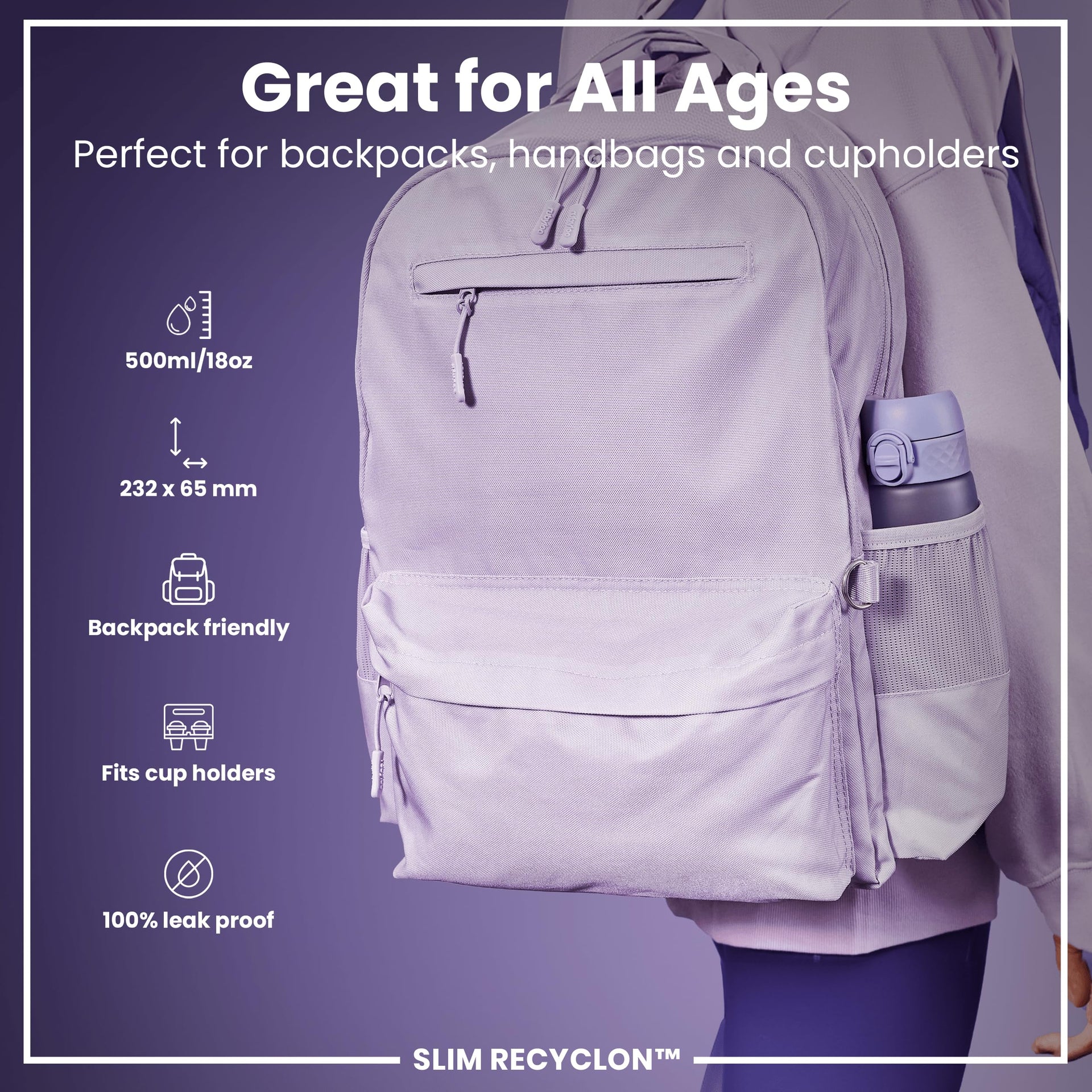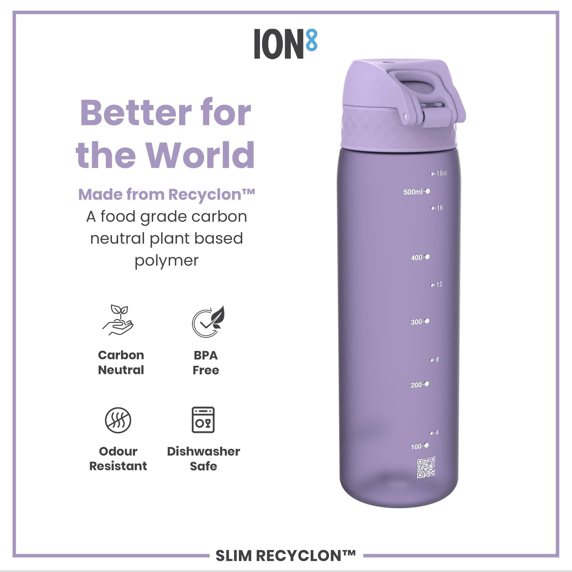 Ion8 Water Bottle, 500 ml/18 oz, Leak Proof, Easy to Open, Secure Lock, Dishwasher Safe, BPA Free, Flip Cover, Carry Handle, Fits Cup Holders, Easy