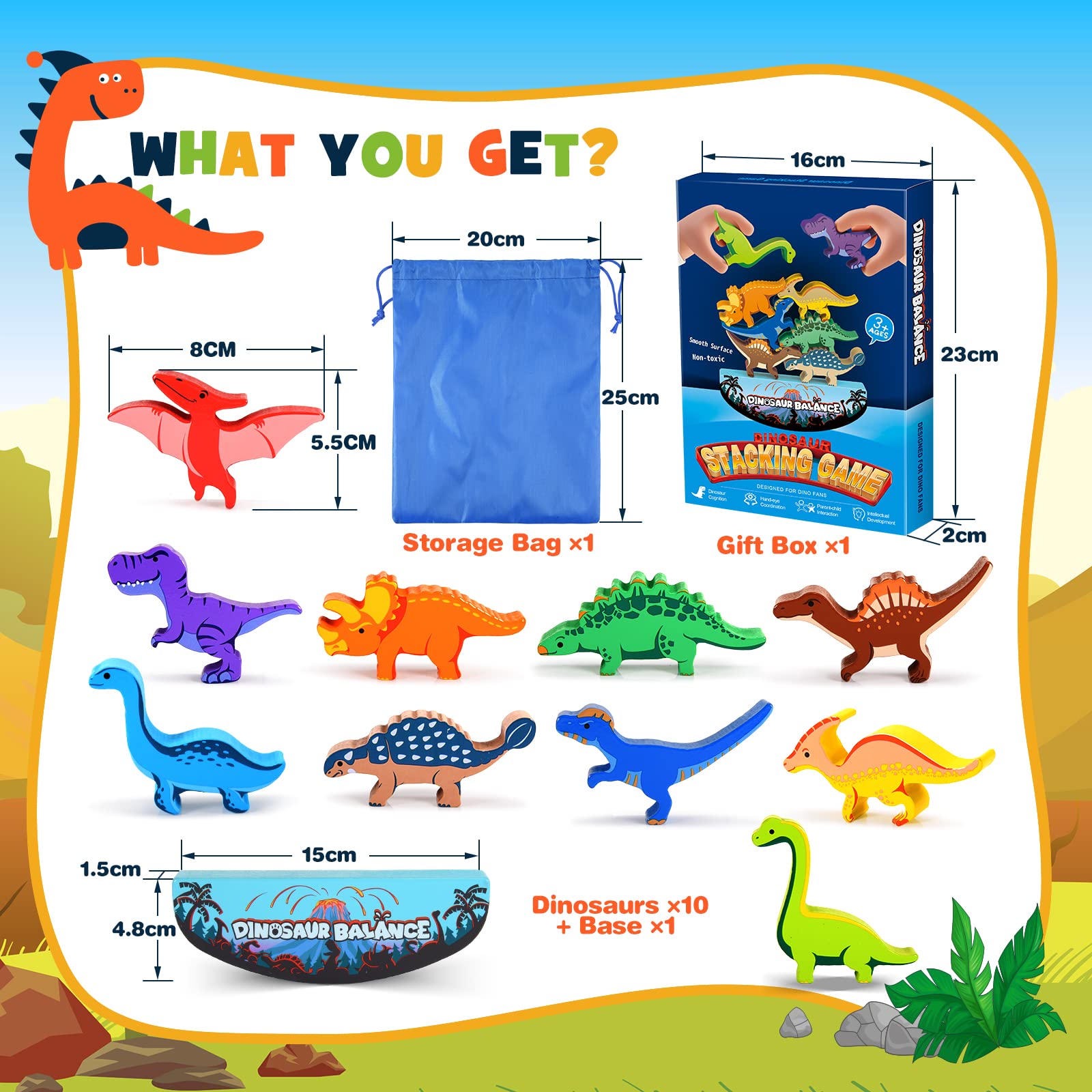 IPOURUP Dinosaur Stacking Toys | Wooden Montessori Balance Game for Kids 3–8 | Fun Family Competition & Birthday Gift for Boys & Girls