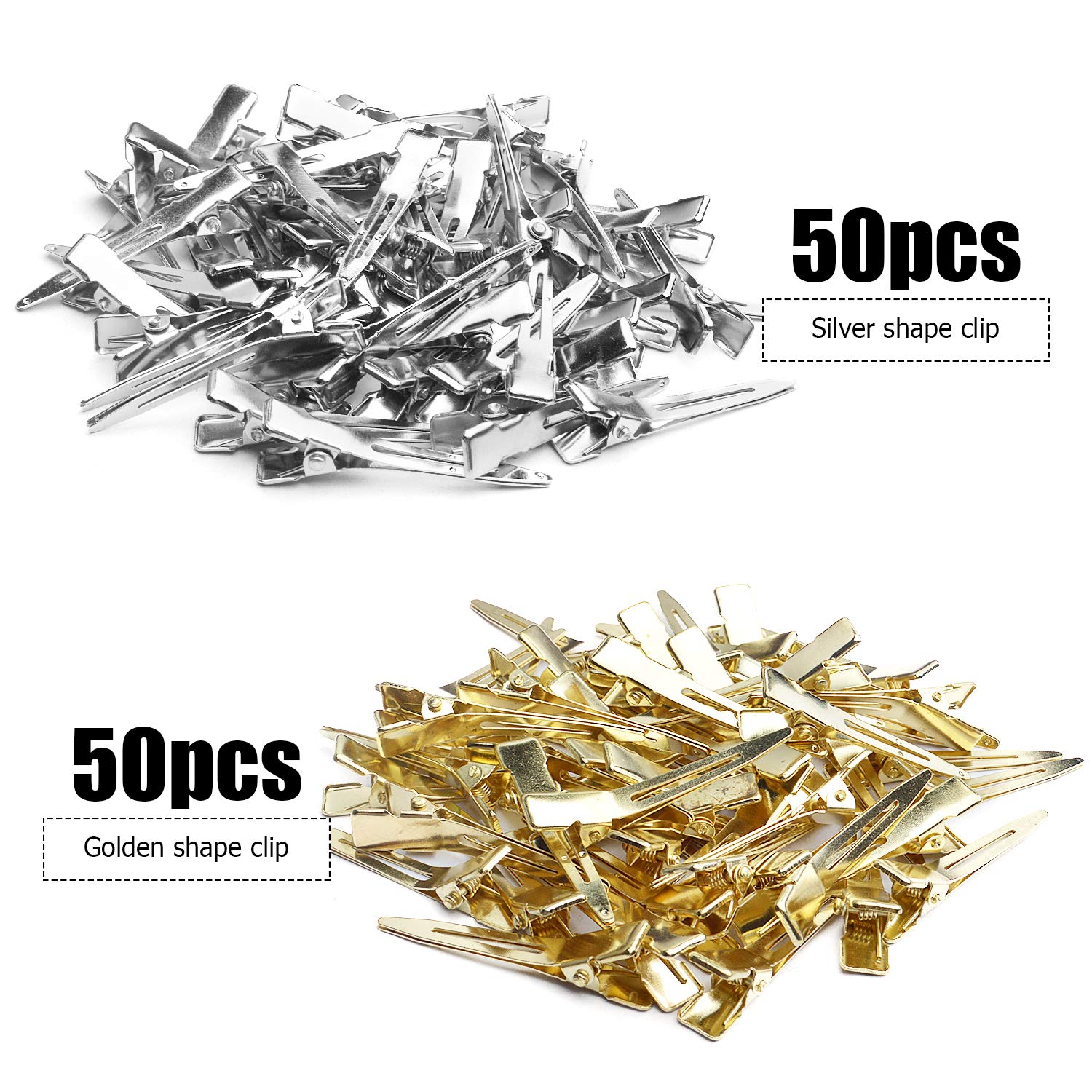 Jdesun 100pcs 1.77 Inches Single Prong Curl Clips Section Clips Metal Alligator Hair Clips Hairpins for Hair Extensions, 2 Colors