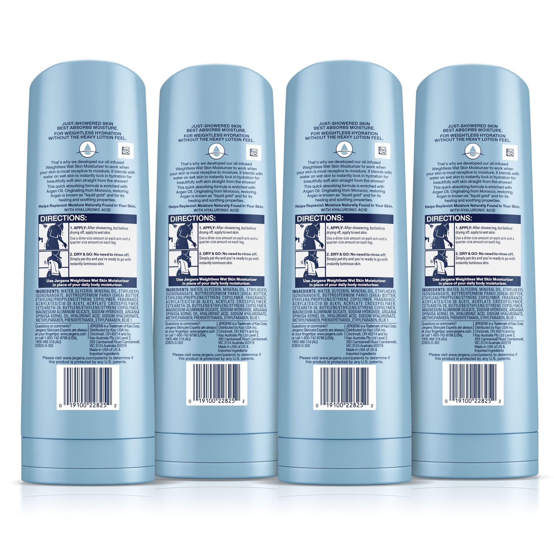 Jergens Wet Skin Body Moisturizer with Argan Oil, 4X Healthier Looking Skin, Fast-Absorbing, Non-Greasy, Dermatologist Tested, 10 Oz, Pack of 4