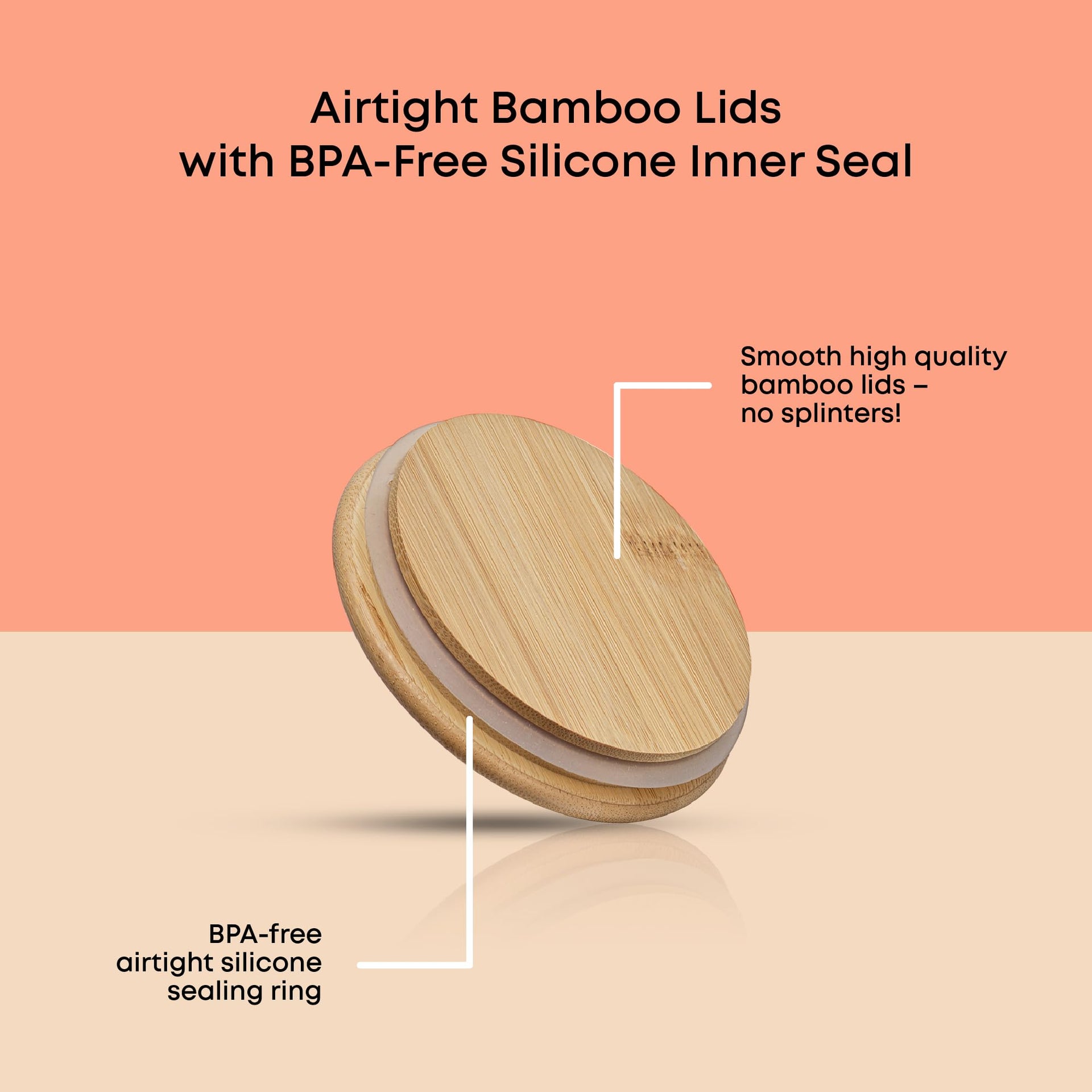 JoyJolt Borosilicate Glass Jars With Bamboo Lids. 6 Pc Set of Air Tight Sealable Containers. Food Jar Canisters with Airtight Lid for Pantry Storage…