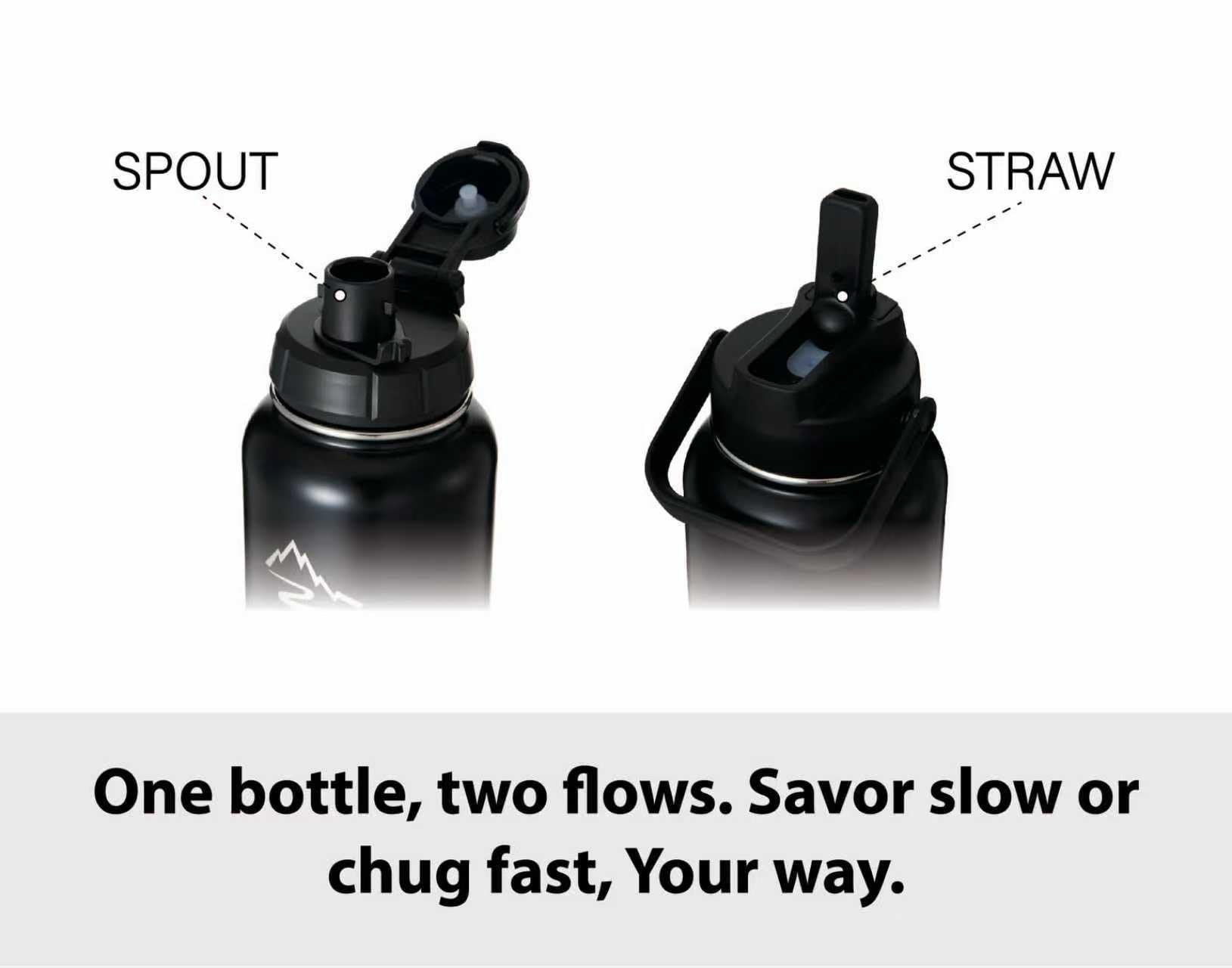 • [Premium Stainless Steel Construction with Dual Lid Design] Built with high-grade, BPA-free stainless steel, this bottle is durable, resistant to dents, and safe for both you and the environment. This bottle includes two innovative lids for unparalleled convenience. Ideal for quick sips or controlled pouring, perfect for active lifestyles or commuting. Features a flexible, easy-to-use straw for effortless sipping on the go, adapt to your every need.
