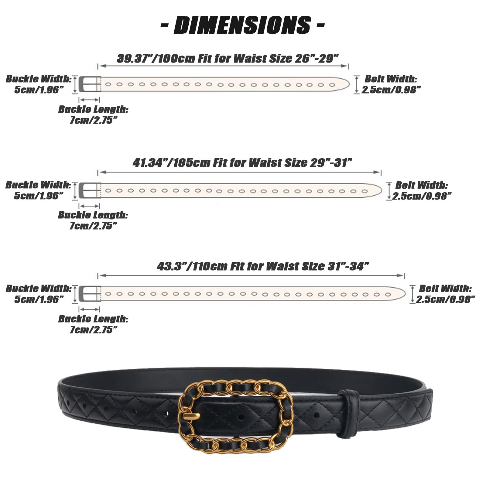 • 💕【Stylish & Classic】The waistband features a trendy quilting design for a modern aesthetic. The belt buckle is woven from cowhide leather and gold metal chain, which is beautiful and elegant. It will show your elegance and luxury without being exaggerated. You won't regret choosing it.