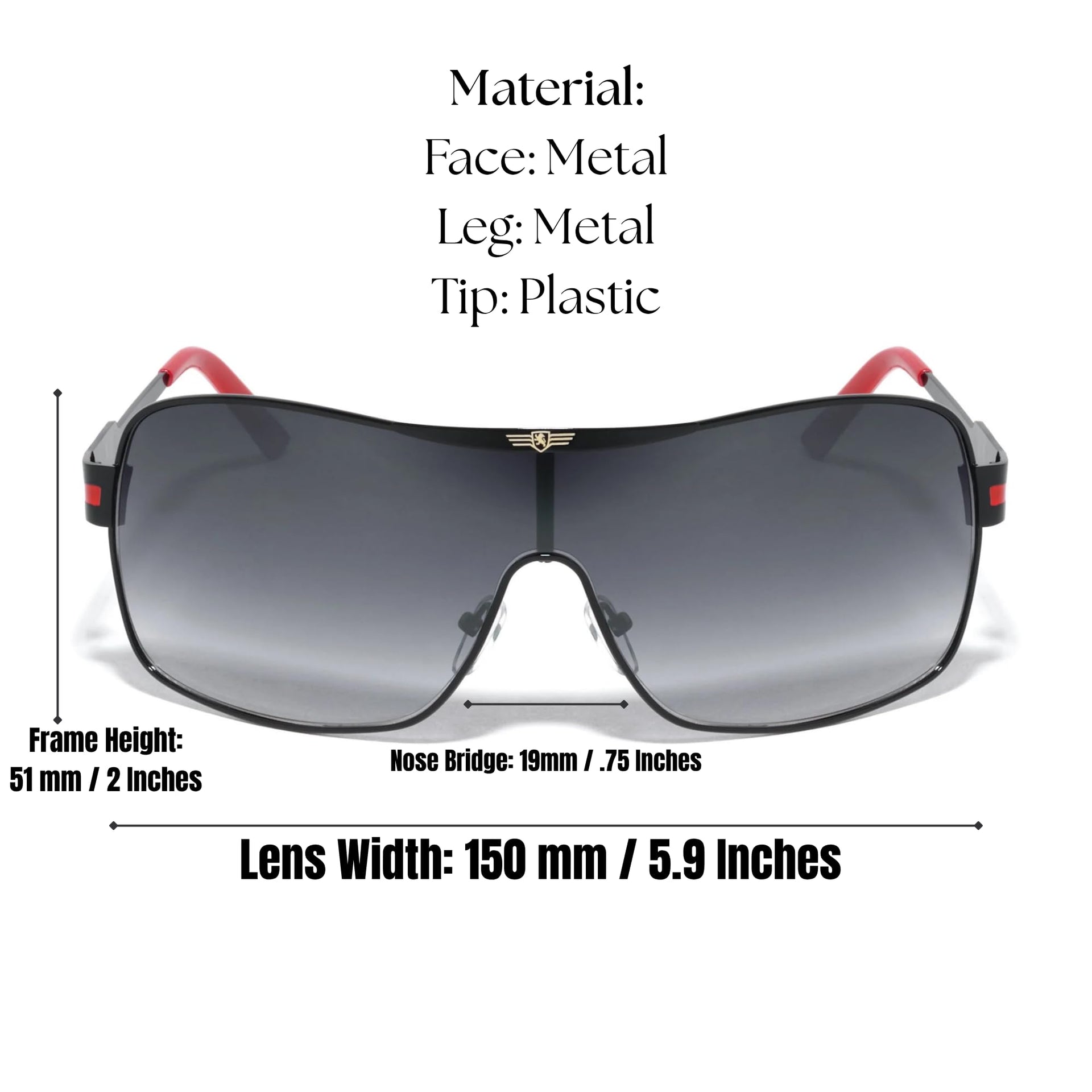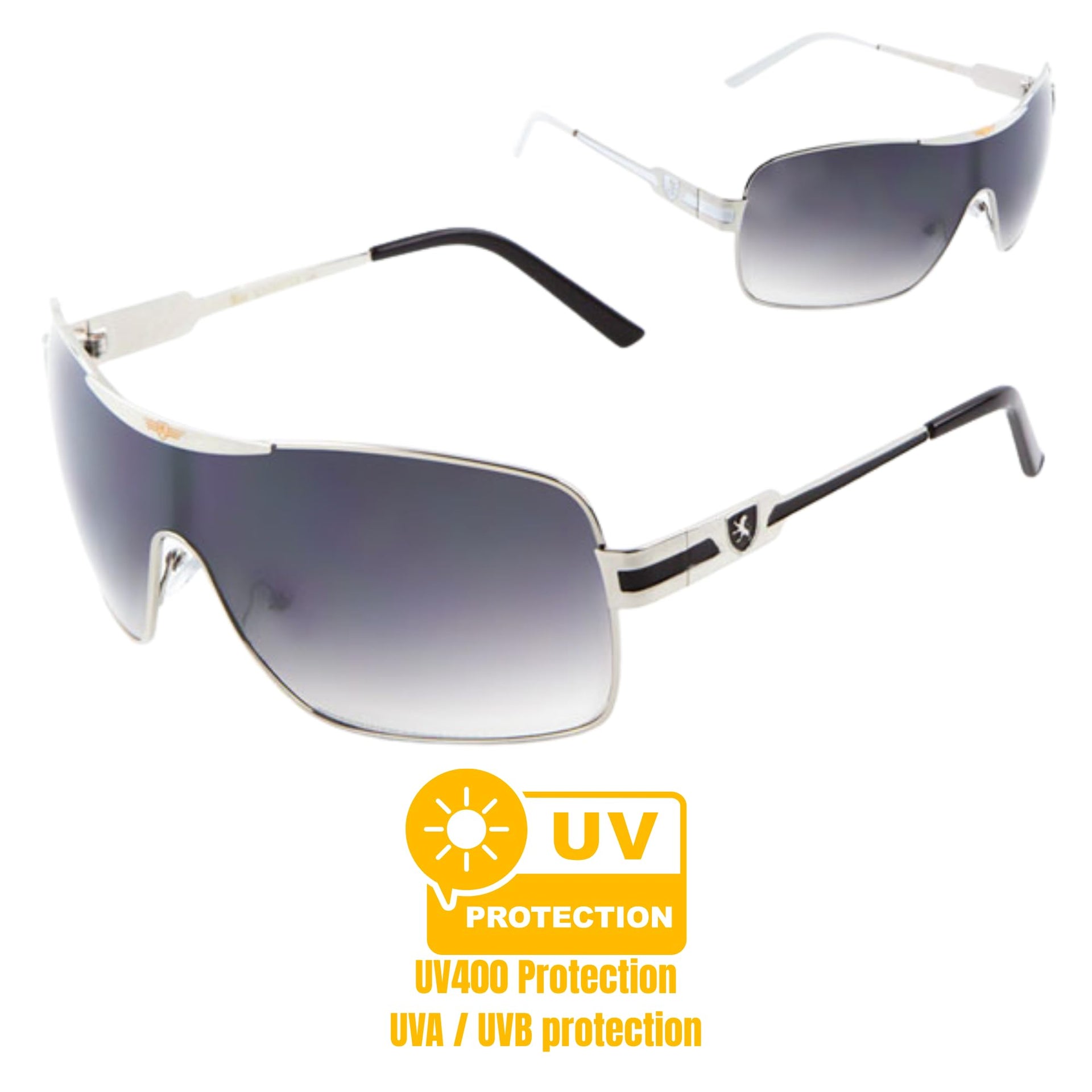 Khan Wrap Around Shield Aviator One Piece Gradient Lens Sunglasses (Silver & Black Frame, Black Gradient Lens)