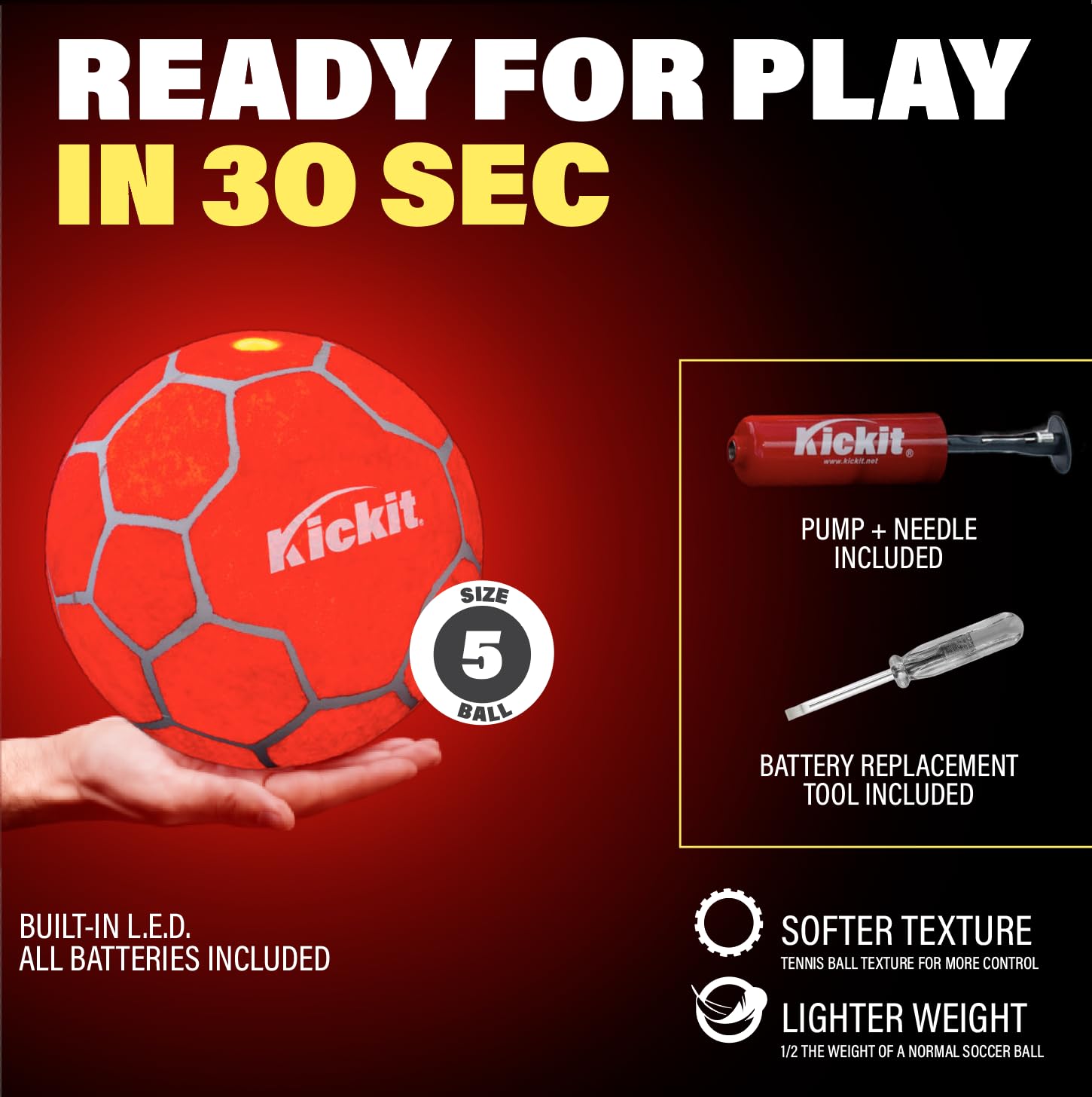 • PICKLEBALL MEETS SOCCER: Get ready to play Kickit Soccer Tennis with the official ball, designed to elevate your game and provide endless fun. The Built-In LED activates on impact and is perfect for night sessions!