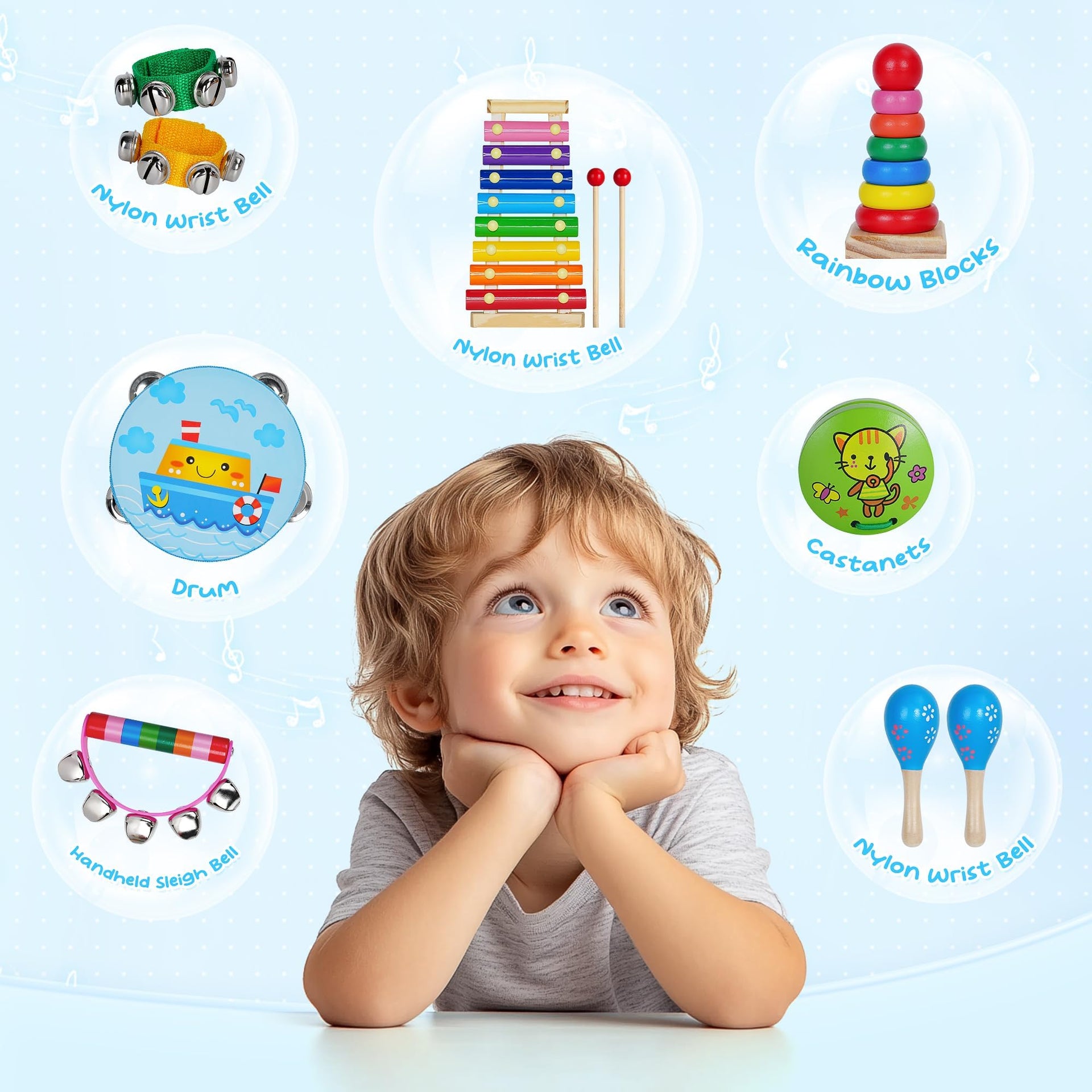 Kids Musical Instruments for Toddlers,Baby Musical Toys for Toddlers,Christmas Kids Gifts,First Birthday Gifts for Boys Girls,Kids Xylophone,Maracas for Baby,Wooden Instruments Toddler Toys with Bag