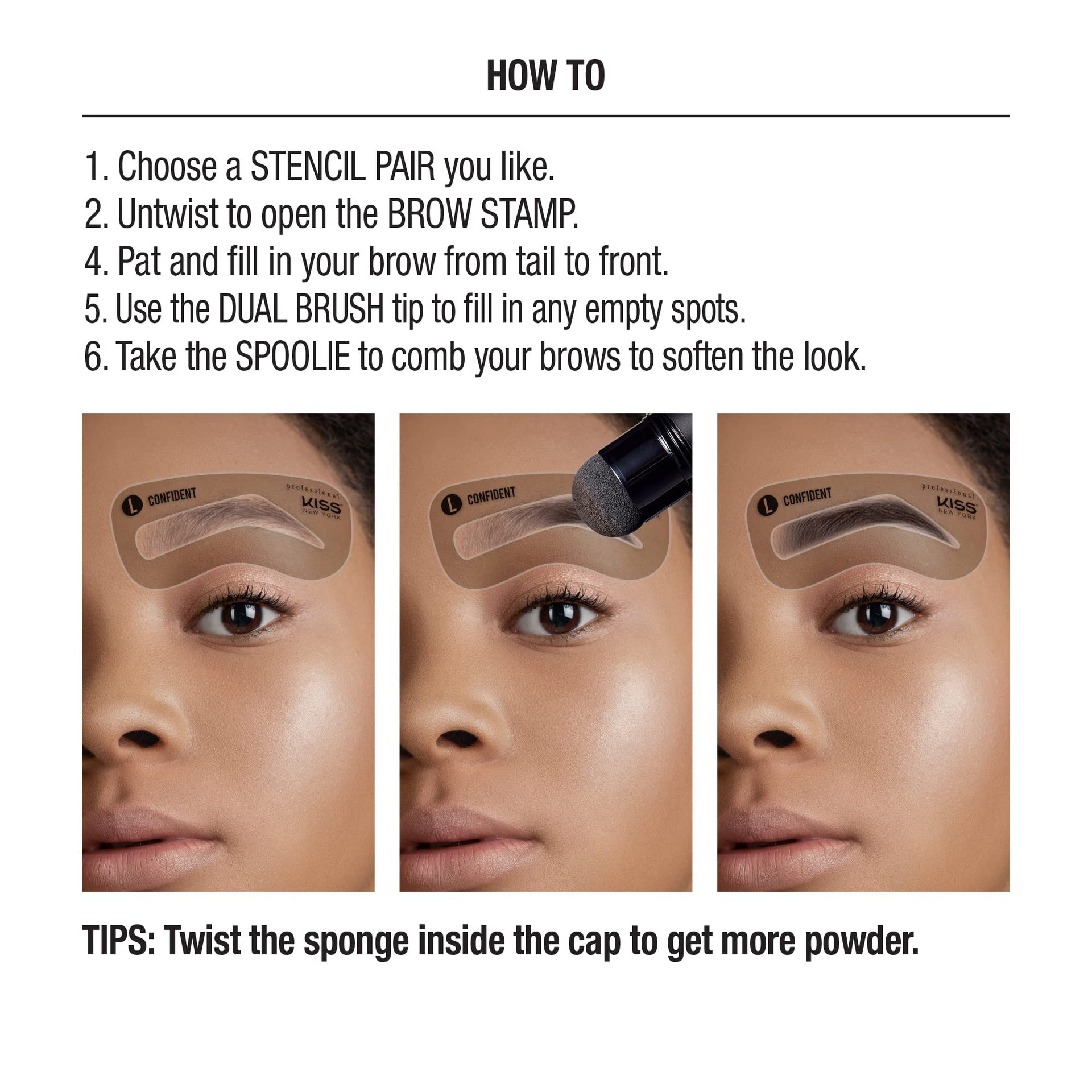 • No need to waste time measuring your eyebrows! With the Professional Kiss New York Instant Brow Stamp and Stencil Kit, you can quickly get a pair of symmetrical, satisfying brows. It can help those who usually have trouble positioning and spacing their eyebrows. If you want them in the same shape and size, the kit does the job for you