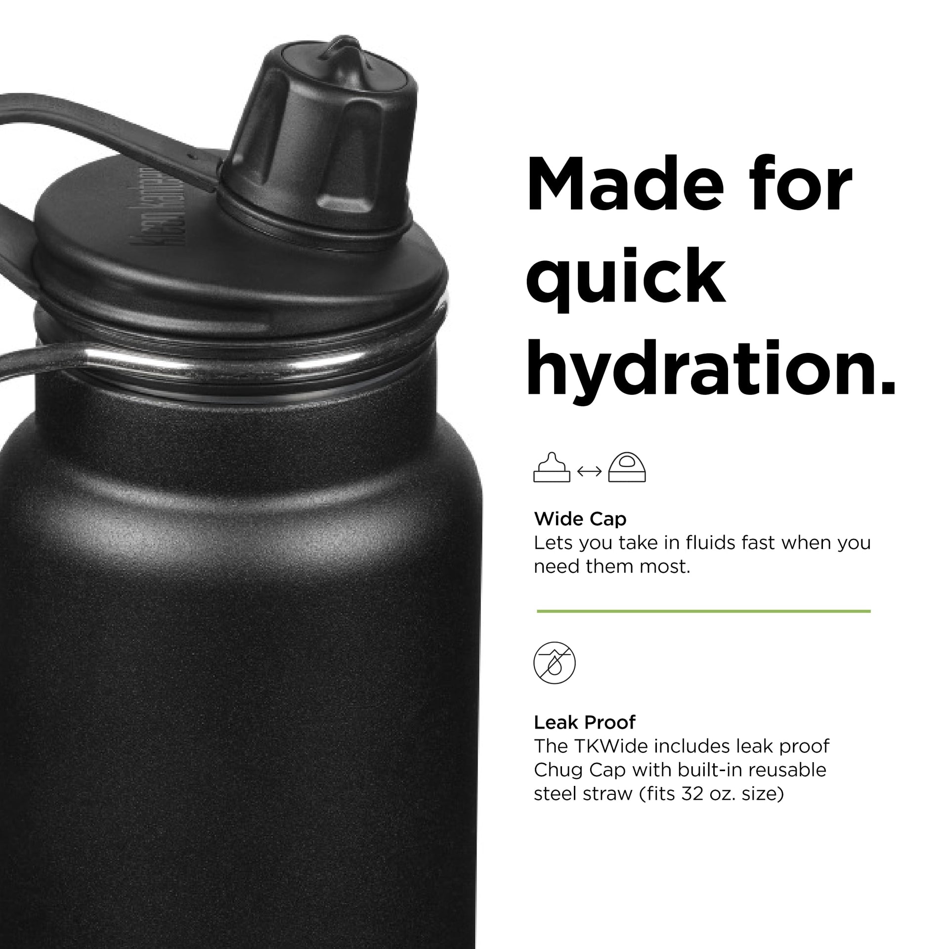Klean Kanteen TKWide Insulated Bottle with Chug Cap - Stainless Steel, Portable - Black, 32 oz