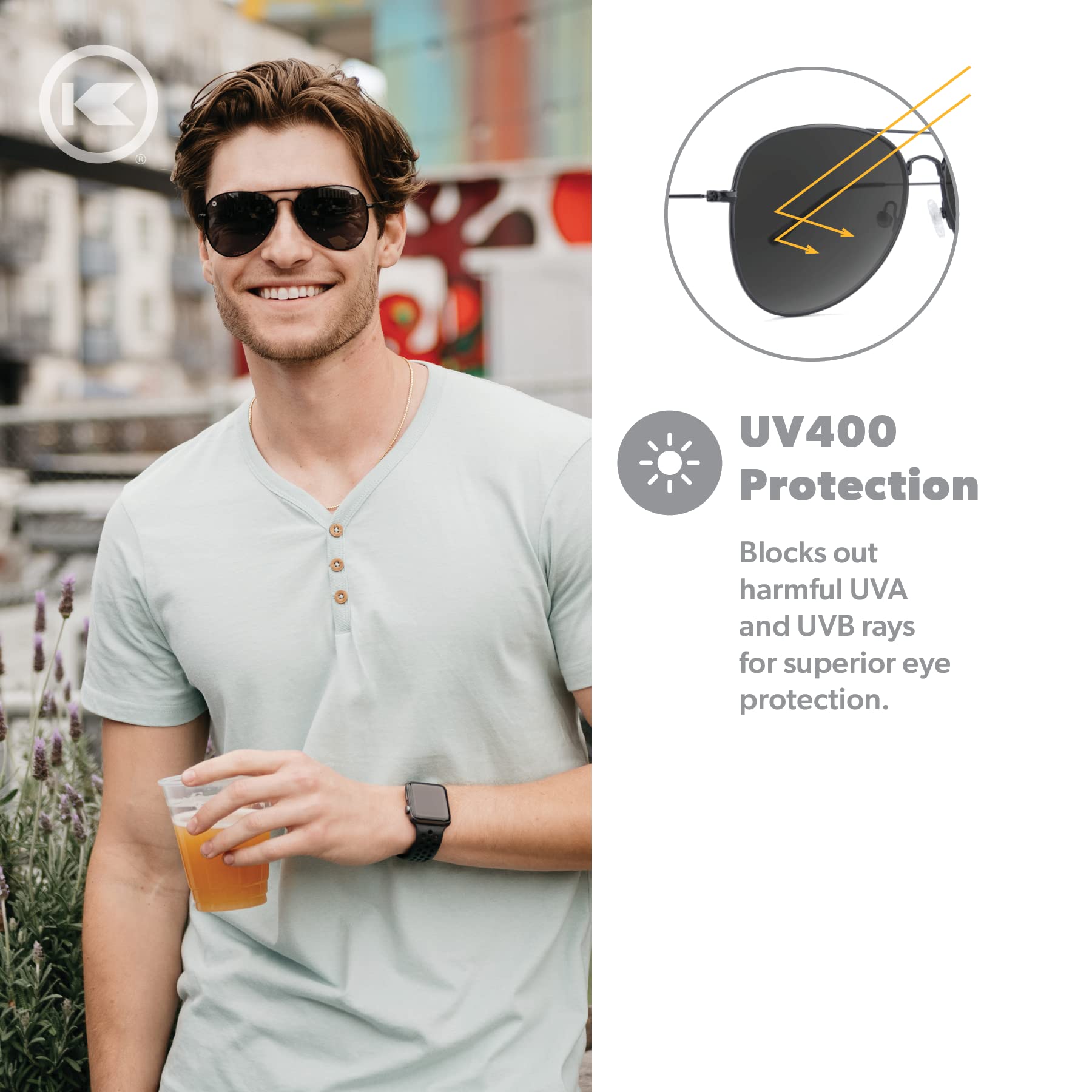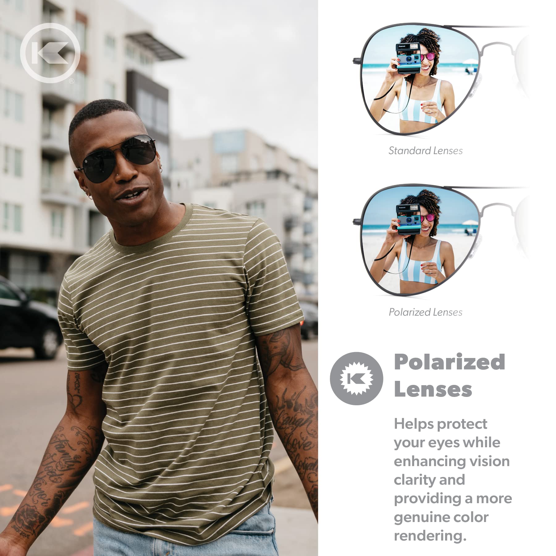 Knockaround Mile Highs Polarized Sunglasses - Aviator Sunglasses with Full UV400 Protection & Impact Resistant Lenses, Black Metal Frames/Black Lenses