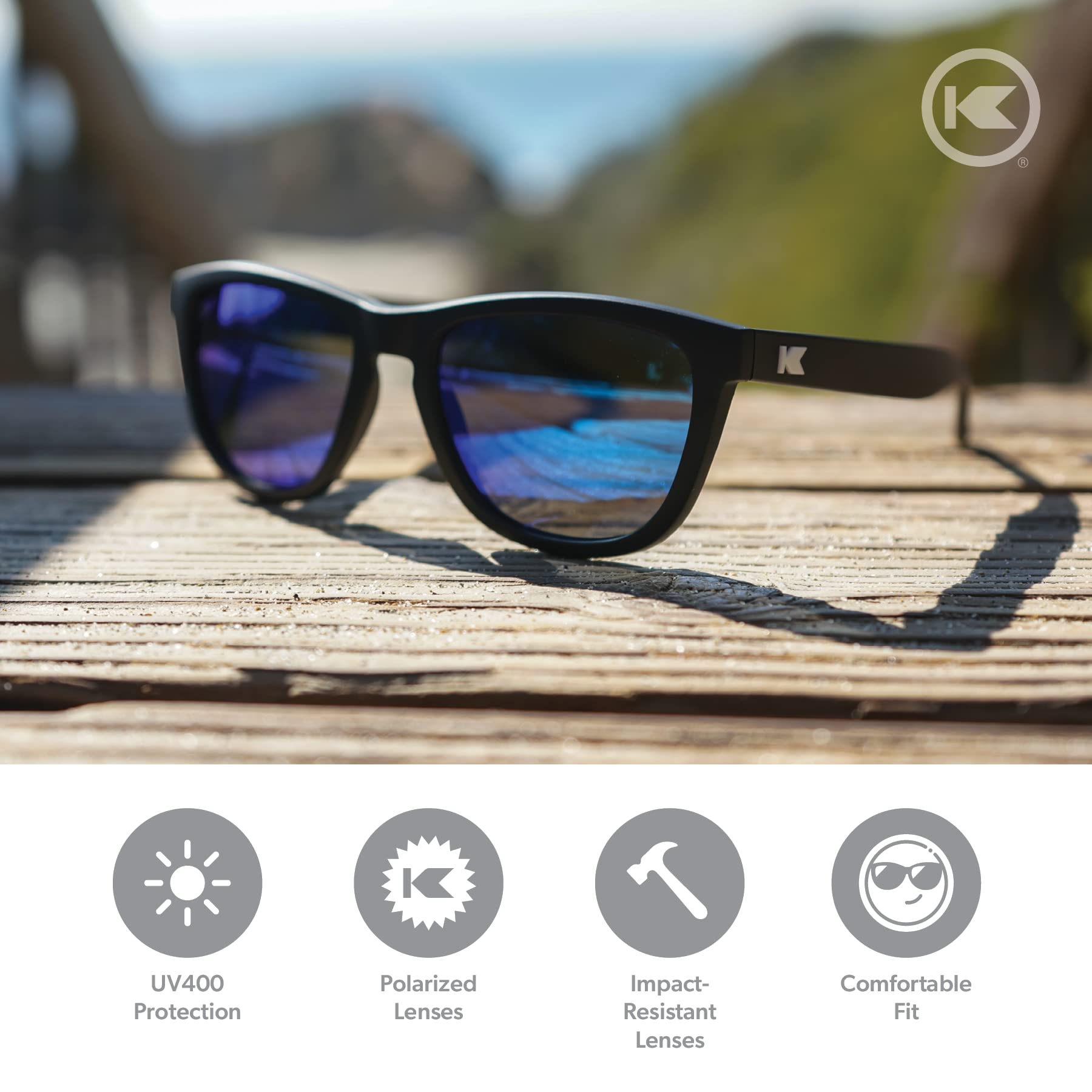 Knockaround Premiums Polarized Sunglasses for Men & Women - Impact Resistant Lenses & Full UV400 Protection, Matte Black Frames/Blue Reflective Lenses