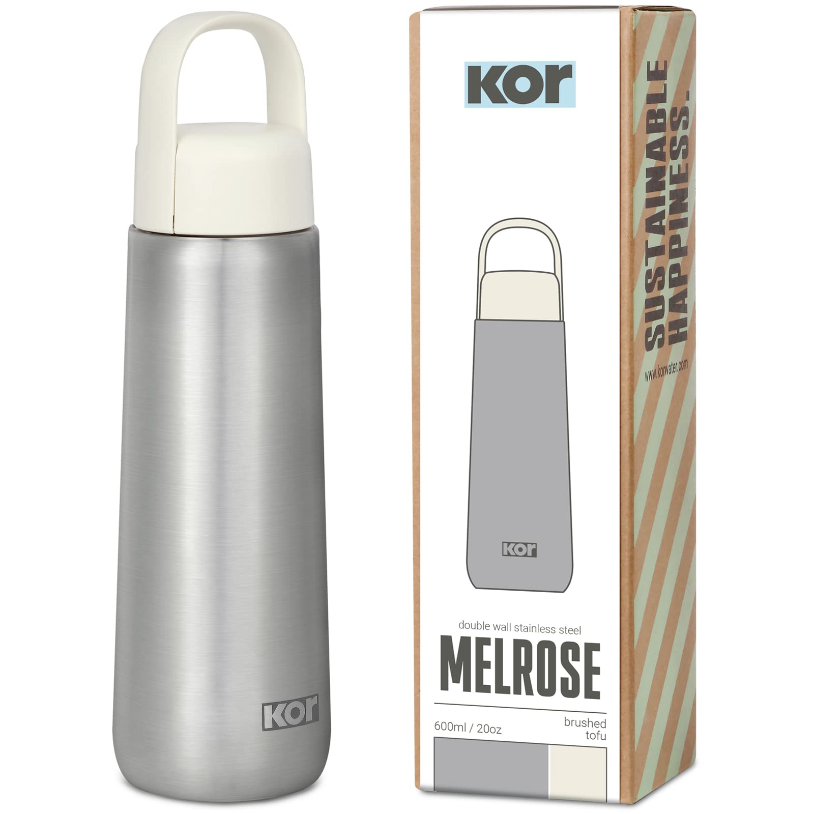 Kor Melrose 20oz Double Wall Insulated Water Bottle - Keeps Beverages Hot for 12hrs, Cold for 24hrs - Stainless Steel Design - Contoured Perfect