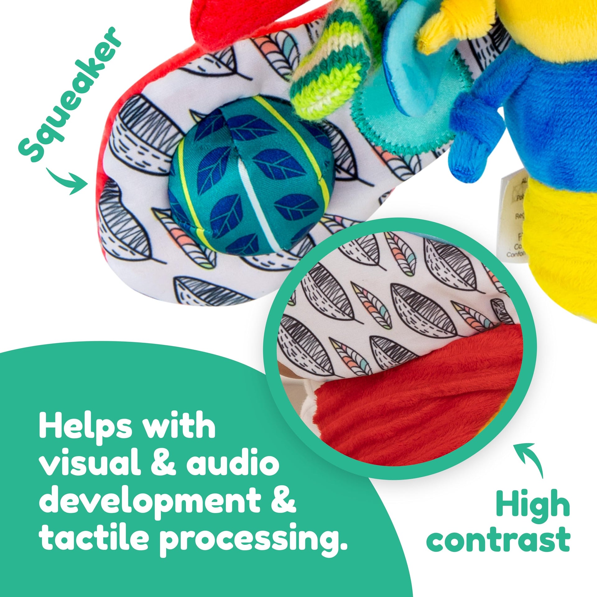 • Bonding Moments: This car seat toy promotes close, nurturing interactions between baby and caregiver and early imaginative play as you help baby discover the sensory colors, textures and sounds