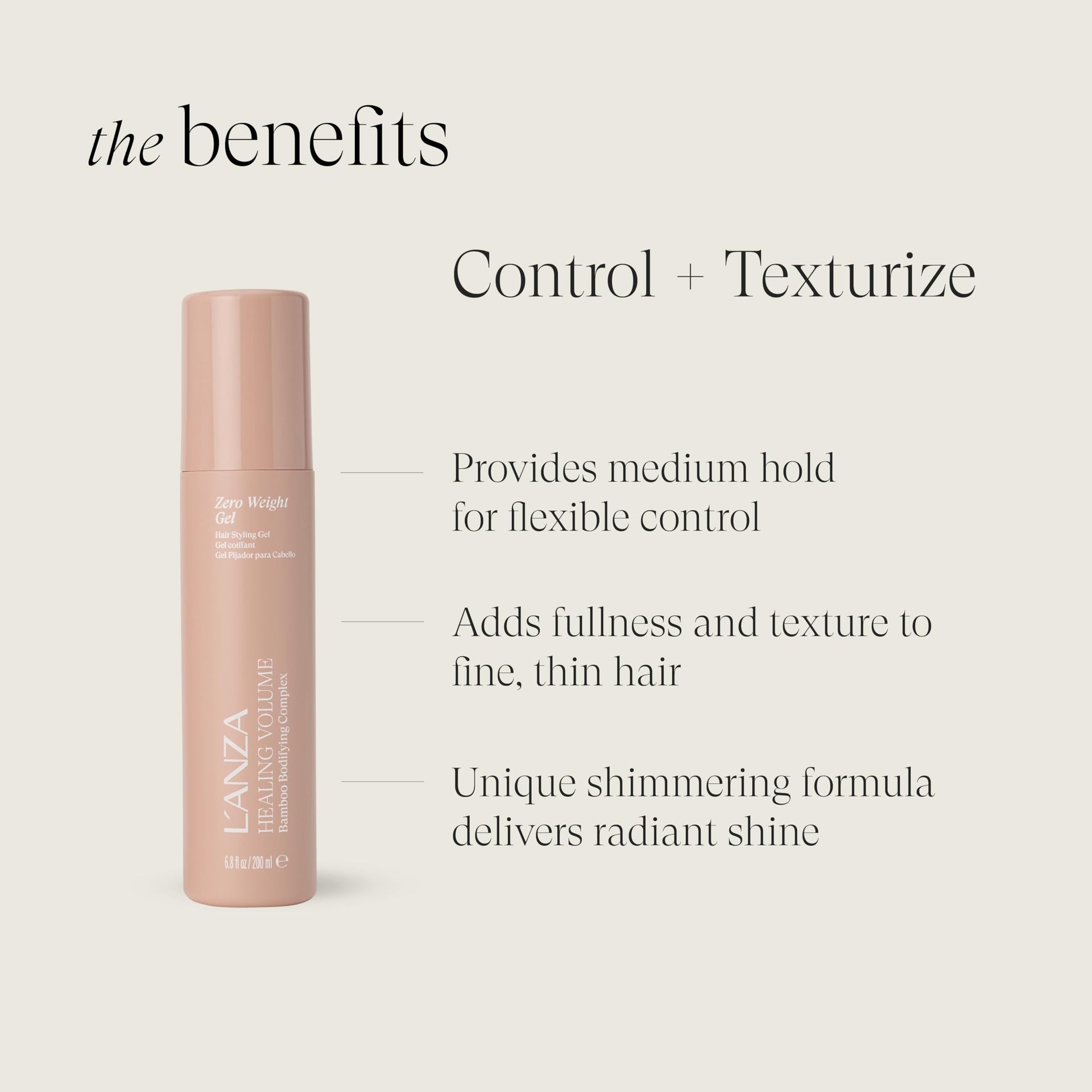 L'ANZA Healing Volume Zero Weight Gel, Extra Hold Hair Gel Dramatically Boosts Shine, Volume, and Thickness of Fine Flat Hair, And Styling Gel