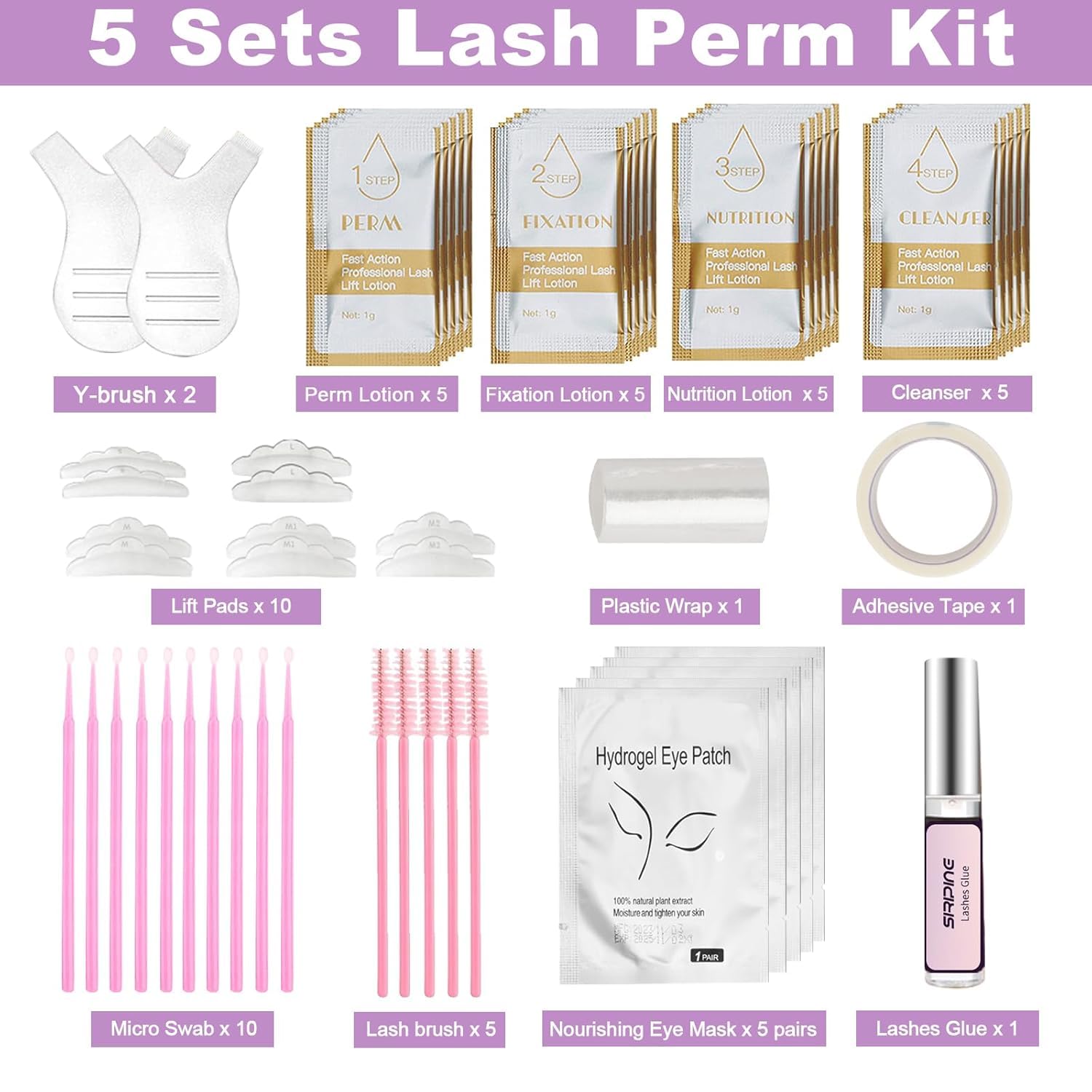 • 【Included All Kits】 Siripine lash lift kits includes all kits and tools in one box: Perm Lotion x 5, Fixation Lotion x 5, Nutrition Lotion x 5, Cleanser x 5, Micro Swab x 10, Lash brush x 5, Y-brush x 2, Lashes Glue x 1, Nourishing Eye Mask x 5 pairs, Adhesive Tape x 1, Plastic Wrap x 1, Lift Pads x 10 (S,M,M1,M2,L)