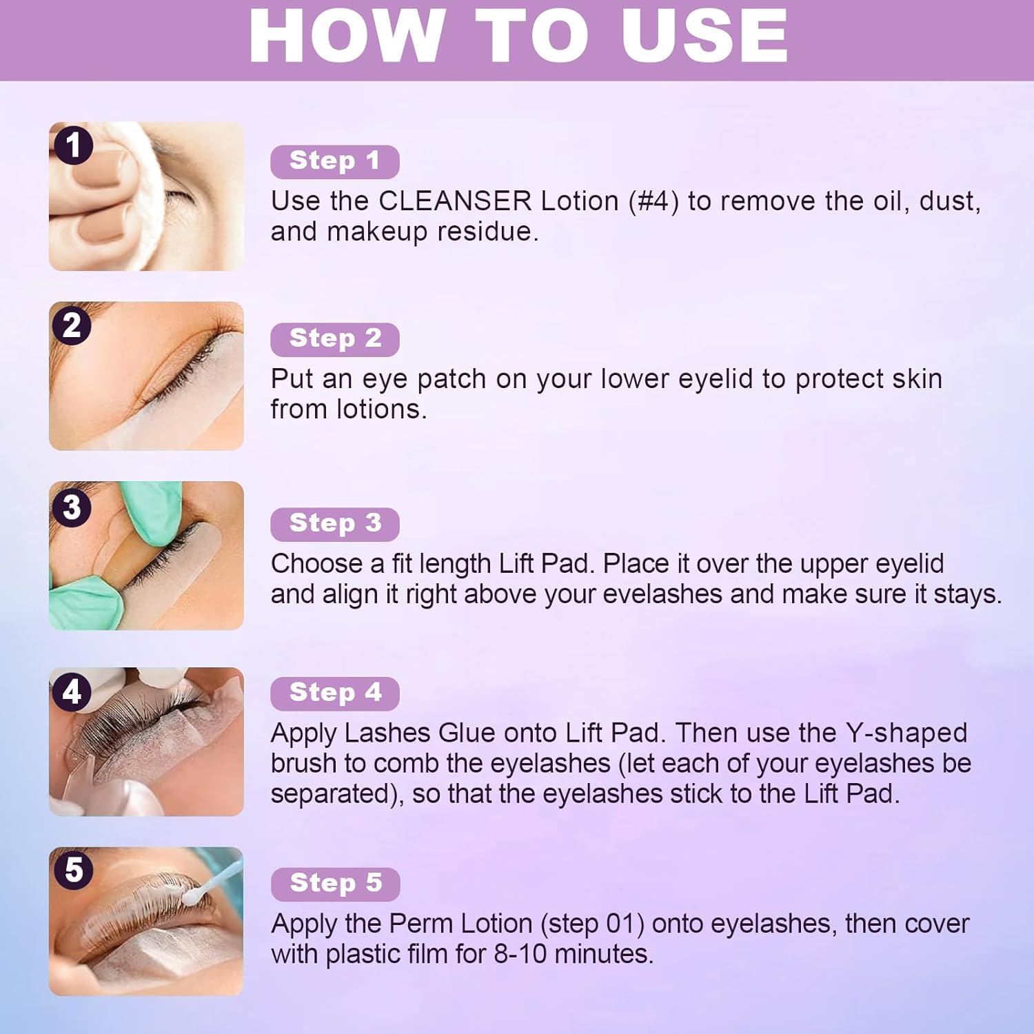 • 【Easy to Use】This lash lift kit uses silicone pads instead of the normal eyelash rollers. Easy to use, it is easier to curl the eyelashes naturally. Our eyelash perm kit comes with comprehensive instructions and sequential labels, making it easy for you to achieve the curl. Effortlessly enhance your lashes without the need for complex techniques.