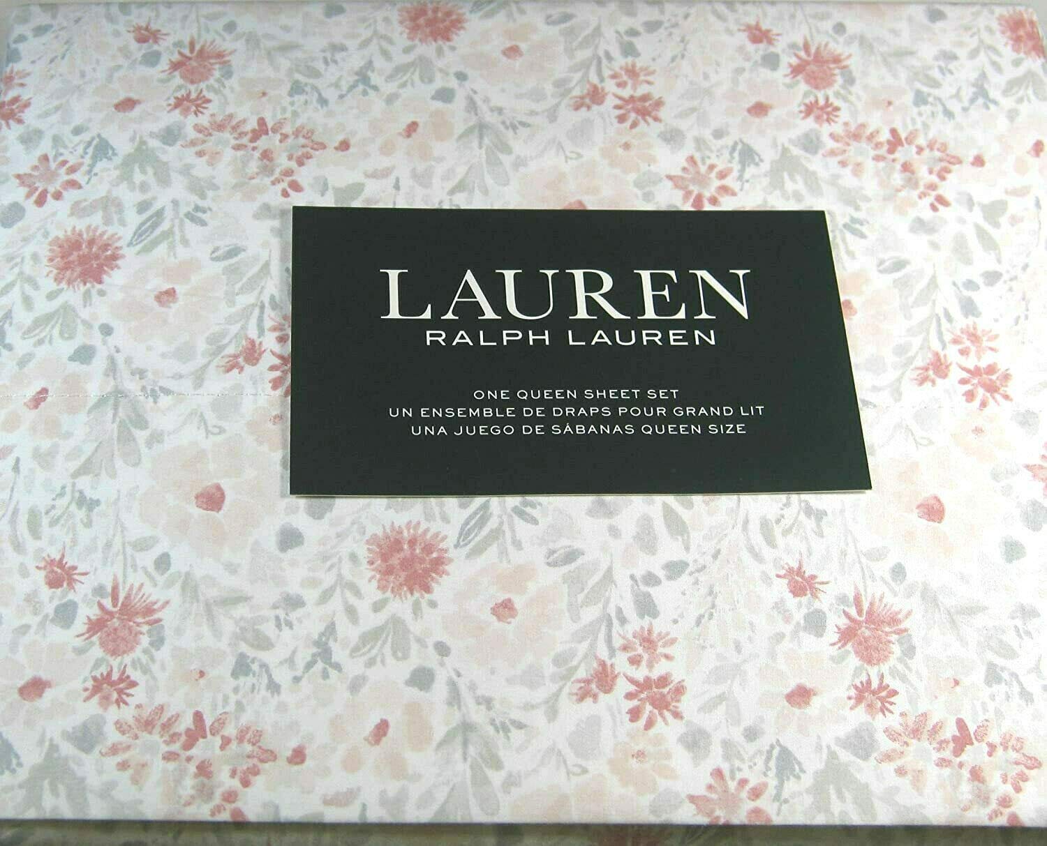 Lauren Queen Size Floral Print Sheet Set Pink and Gray 100% Cotton