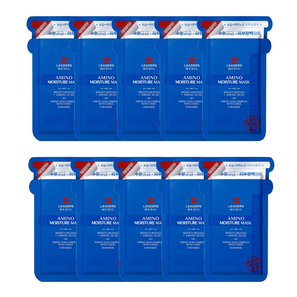 Leaders Mediu Amino Moisture Hydrating Facial Sheet Mask | Natural Mineral Water, Hyaluronic Acid, Ceramide | Anti-Aging, Soothes Dry Skin, Enhances