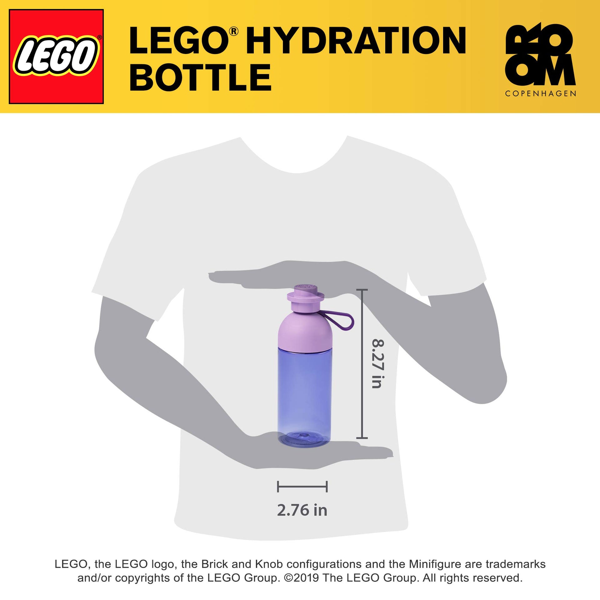 LEGO Hydration Water Bottle, 500ml Transparent Lavender, Drinking Bottle for Toddlers, Dishwasher Safe, Reusable Sports Can