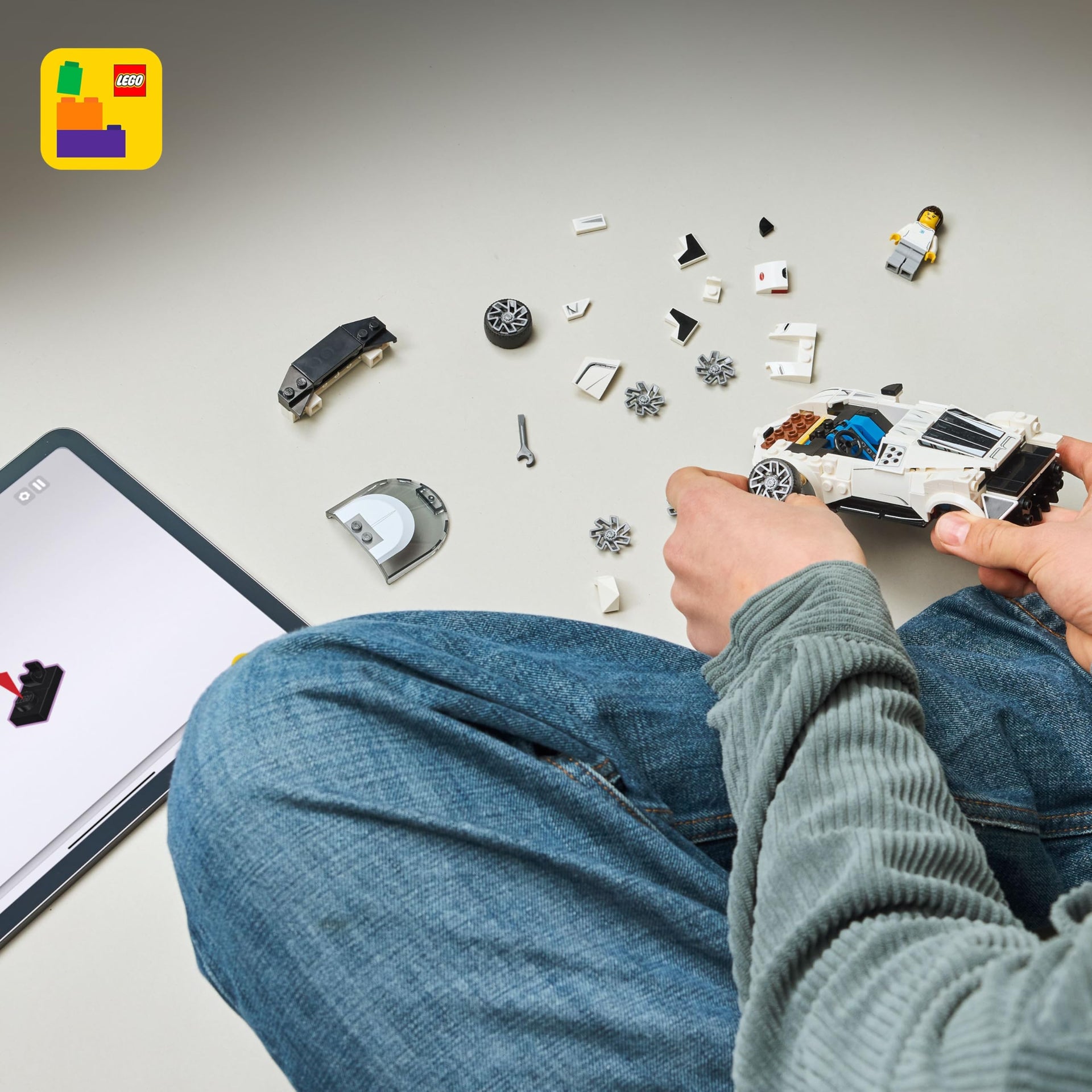 Details: Legendary automotive craftsmanship takes center stage with the LEGO Speed Champions Bugatti Centodieci Hyper Sports Car (77240) building set for kids ages 9 years old and up. This premium model car kit captures the essence of one of the world's most exclusive hyper cars, designed as a modern tribute to the legendary Bugatti EB 110. Every authentic detail has been meticulously recreated, from the distinctive five round air intakes and iconic horseshoe radiator grille to the dramatic overhanging rear wing and quad tailpipes that define this Bugatti masterpiece. Young builders can place the included driver minifigure—dressed in authentic Bugatti racing gear—behind the wheel for high-speed, pretend play racing adventures. After staging epic hyper car showdowns, car fans can proudly display their collection on shelves or a desk as eye-catching room decor. This exciting building toy perfectly balances hands-on construction fun with authentic details for an experience that both kids and adult builders will appreciate. Makes an awesome birthday gift for boys and girls who love sports cars, building toys, and bringing the world of high-performance racing to life. For enhanced building experiences, the LEGO Builder app provides digital guidance and 3D viewing tools. Contains 291 pieces.