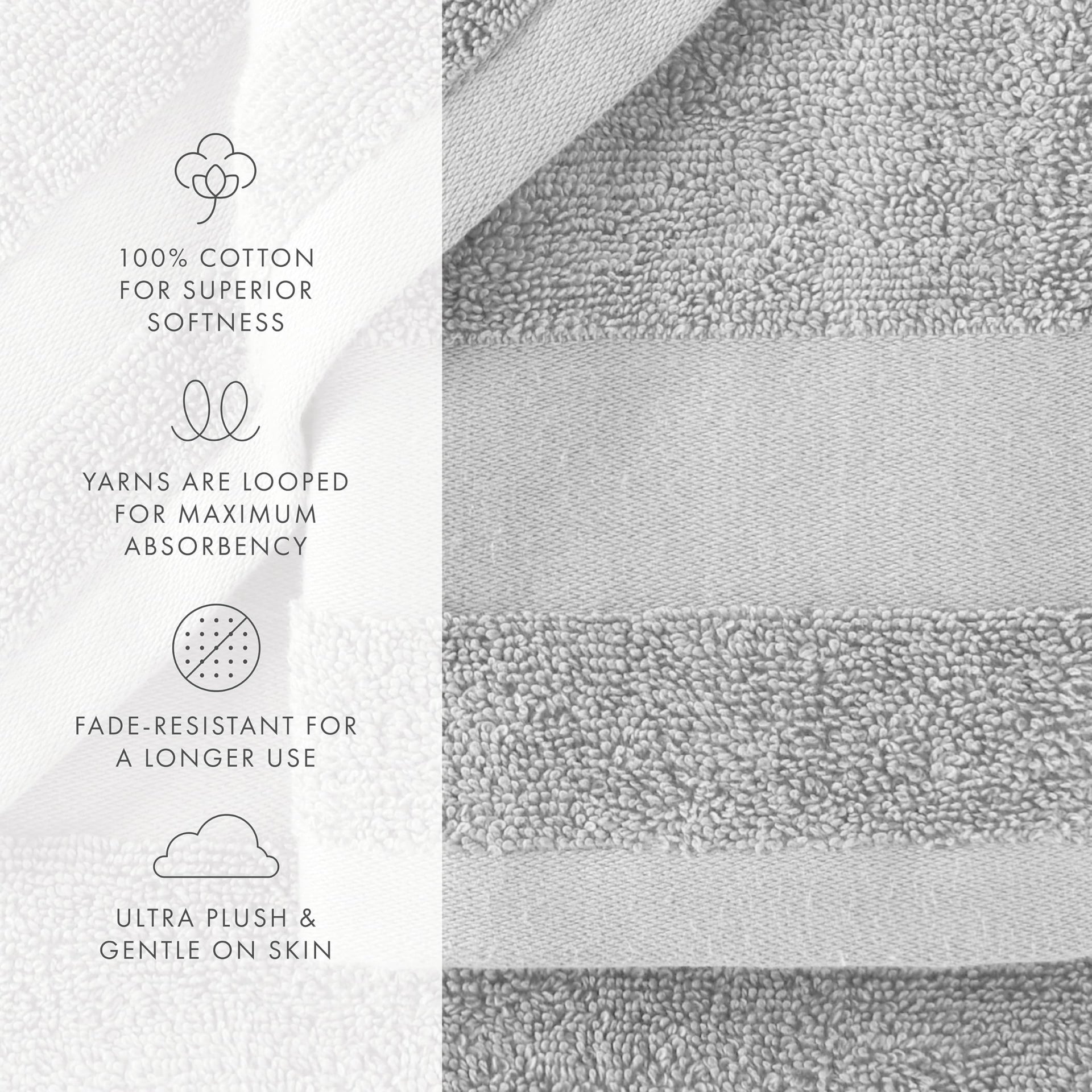 • EASY-TO-CLEAN: The towels are machine washable and maintain that hotel quality no matter how many times they are washed. Our set comes in four elegant colors, making them the ideal choice for both style and necessity.