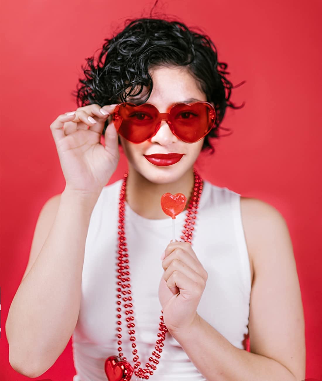 • Various jelly colors frameless sunglasses heart sunglasses pack: This sunglasses bulk including red heart sunglasses, bright yellow, light green, blue, gradient purple, black heart sunglasses, purple, dark green, dark pink, tan, light pink heart glasses, white heart sunglasses, clear enough to meet your different occasion needs