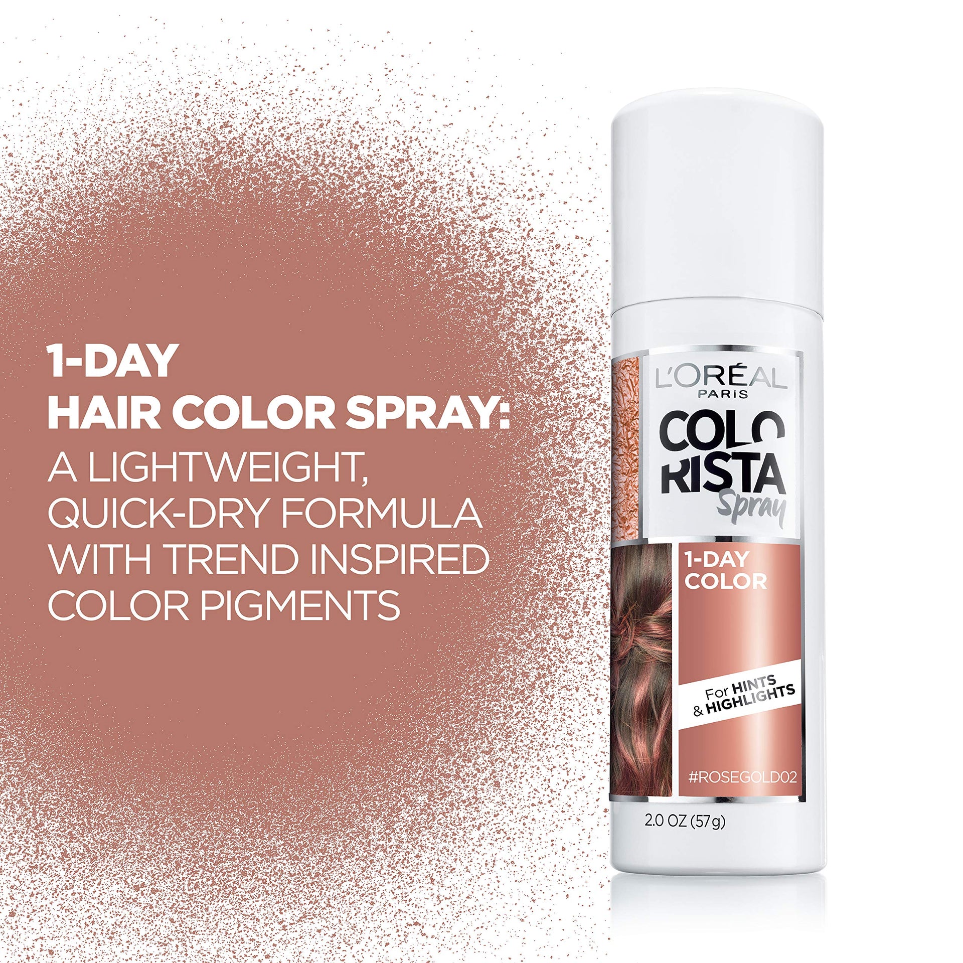 Details: L'Oreal Paris Colorista Spray lets you play with color in a whole new way! A temporary hair color spray that allows you to instantly get bold looks when you want them and how you want them without the commitment - this color spray for hair is out after 1 day and is kind to your hair. Just spray, play, wash, repeat. Each shade is formulated to allow for vivid color on all hair types, no bleach required. Break with the routine and start exploring your style with Colorista Sprays!
