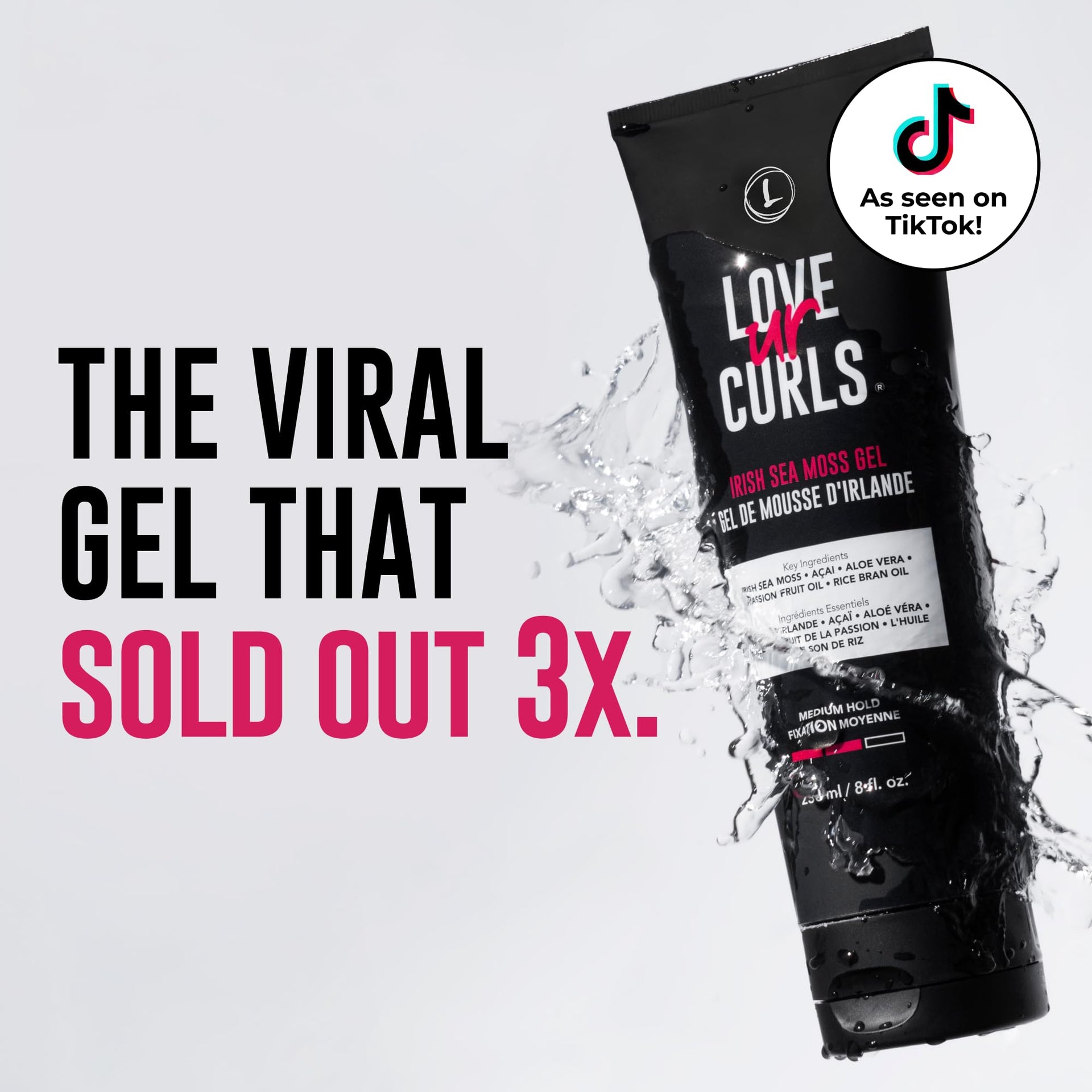 Love Ur Curls Irish Sea Moss Hair Gel, Medium Hold Hair Styling Curling Gel for Defined Curly Hair, Waves & Coils, Vegan, Cruelty Free, 236mL