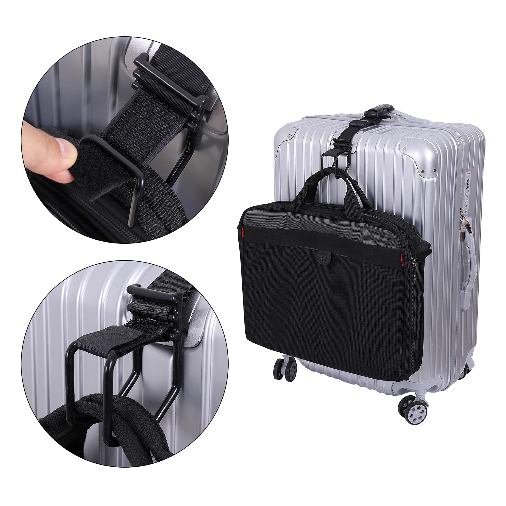 Luggage Hook Strap – Adjustable J Hook Add-a-Bag Strap for Suitcase, Hands-Free Travel Accessory for Carry-On & Extra Bags (Black, Medium)