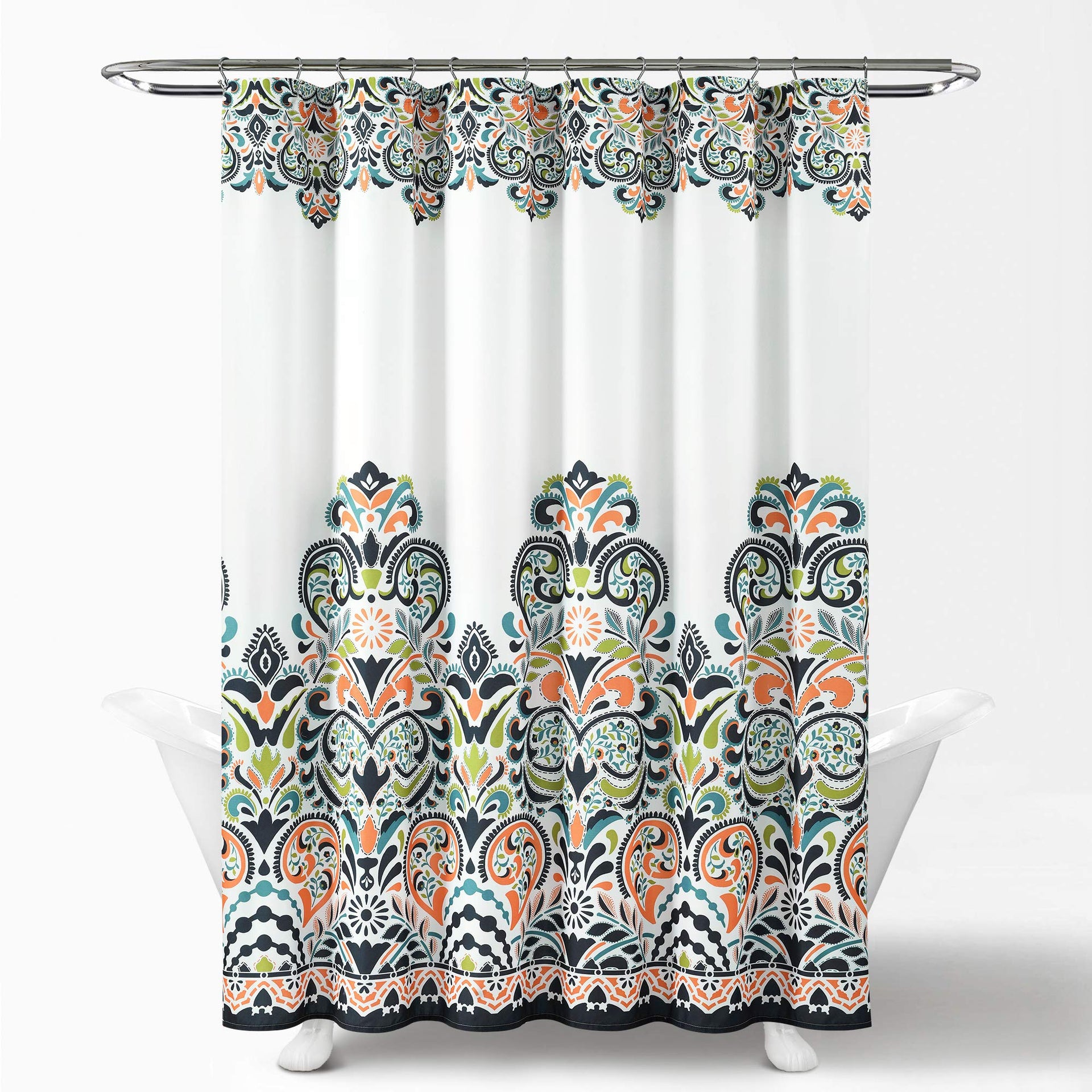 • Bold, eye-catching colors with a paisley damask pattern for a mix of modern and boho style shower curtain.