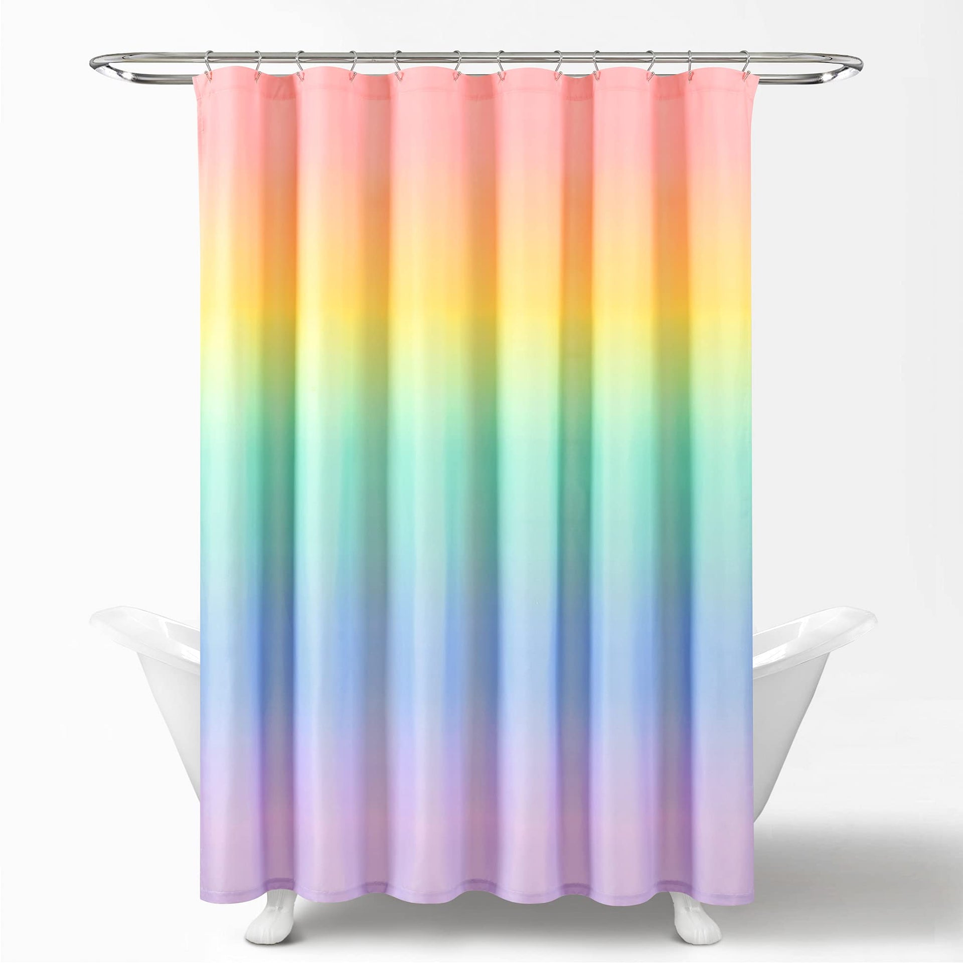 • Animate the style of your child's or your guest bathroom with this exciting ombre rainbow shower curtain.