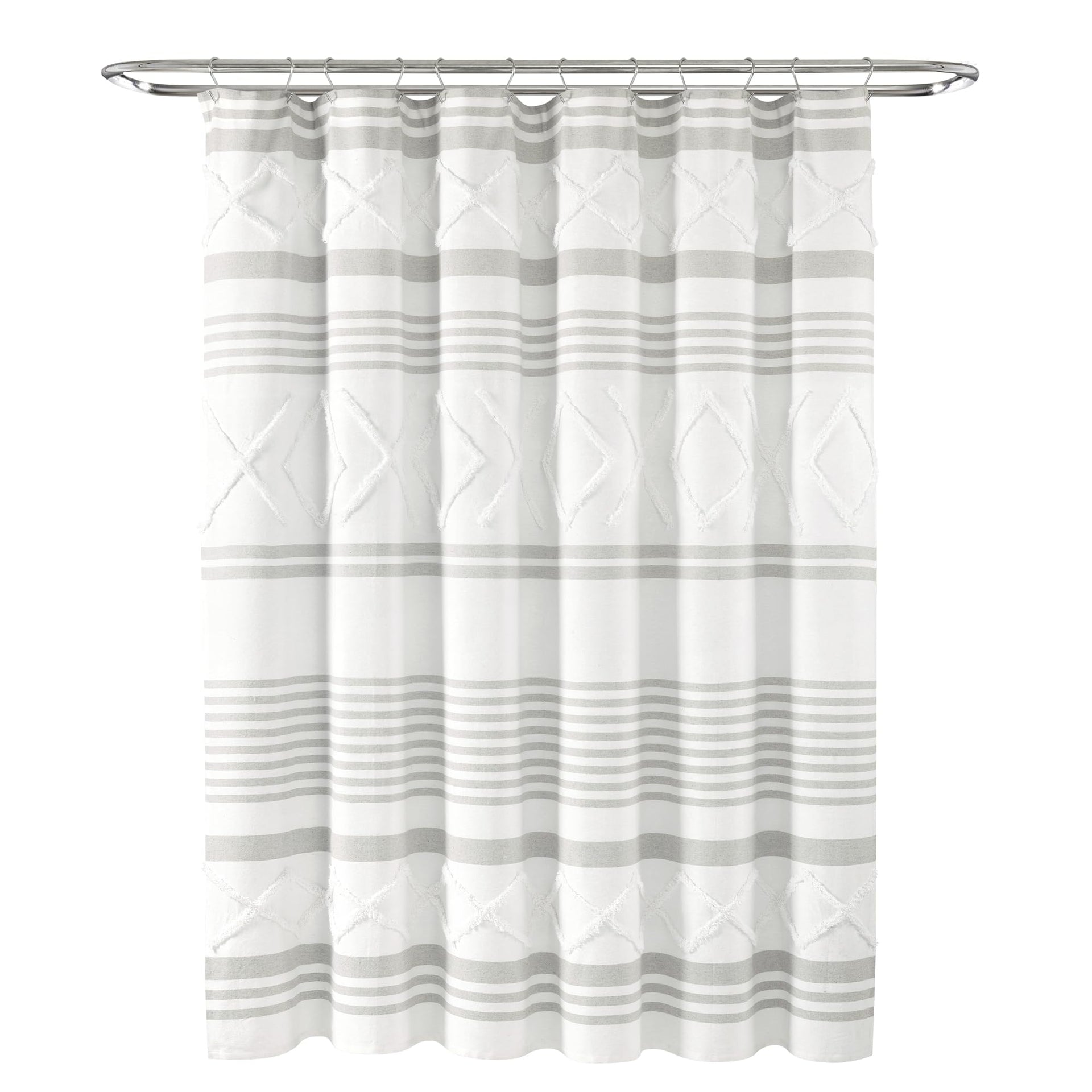 Start your morning routine in a relaxing, well-decorated bathroom when you hang this textured shower curtain. Tufted in a diamond pattern and featuring rows of stripes, this eco-friendly recycled cotton shower curtain will give your bathroom chic style.