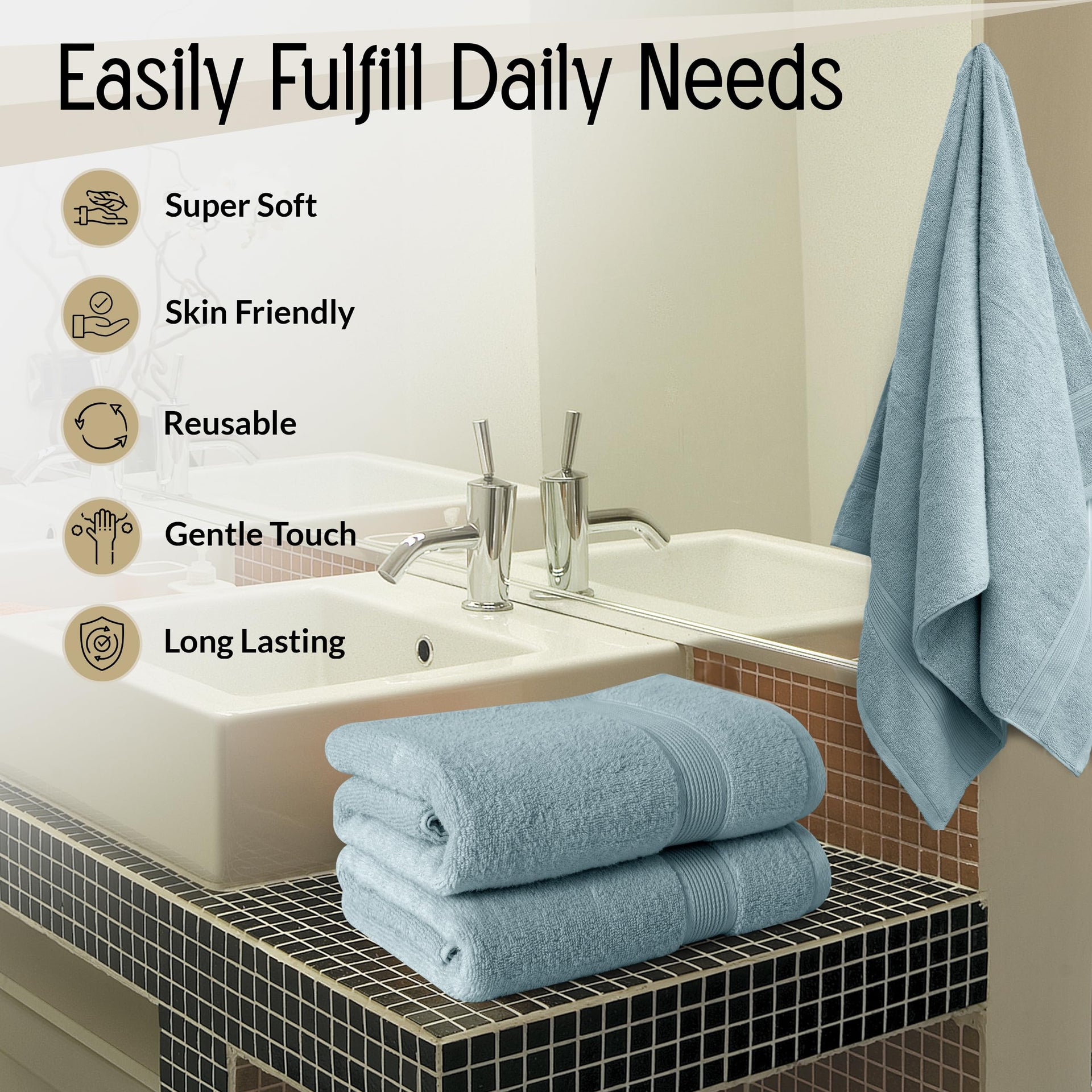 Lux Decor 6 Pack Bath Towel Set - 525 GSM 100% Cotton, Zero Twist Weave, Soft & Absorbent - 2 Bath Towels, 2 Hand Towels, 2 Washcloths, Bathroom…