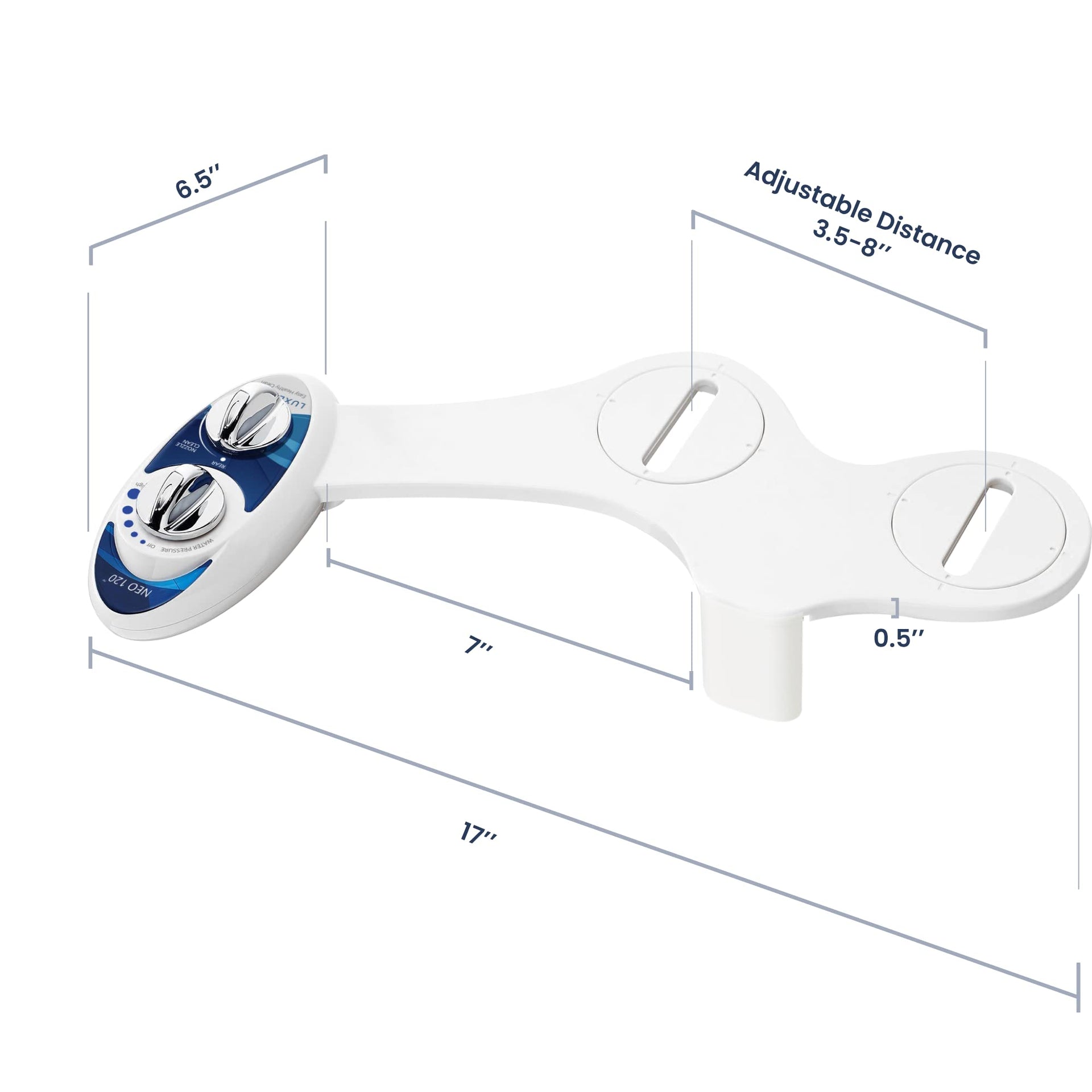 LUXE Bidet NEO 120 - Self-Cleaning Nozzle, Fresh Water Non-Electric Bidet Attachment for Toilet Seat, Adjustable Water Pressure, Rear Wash (Blue)