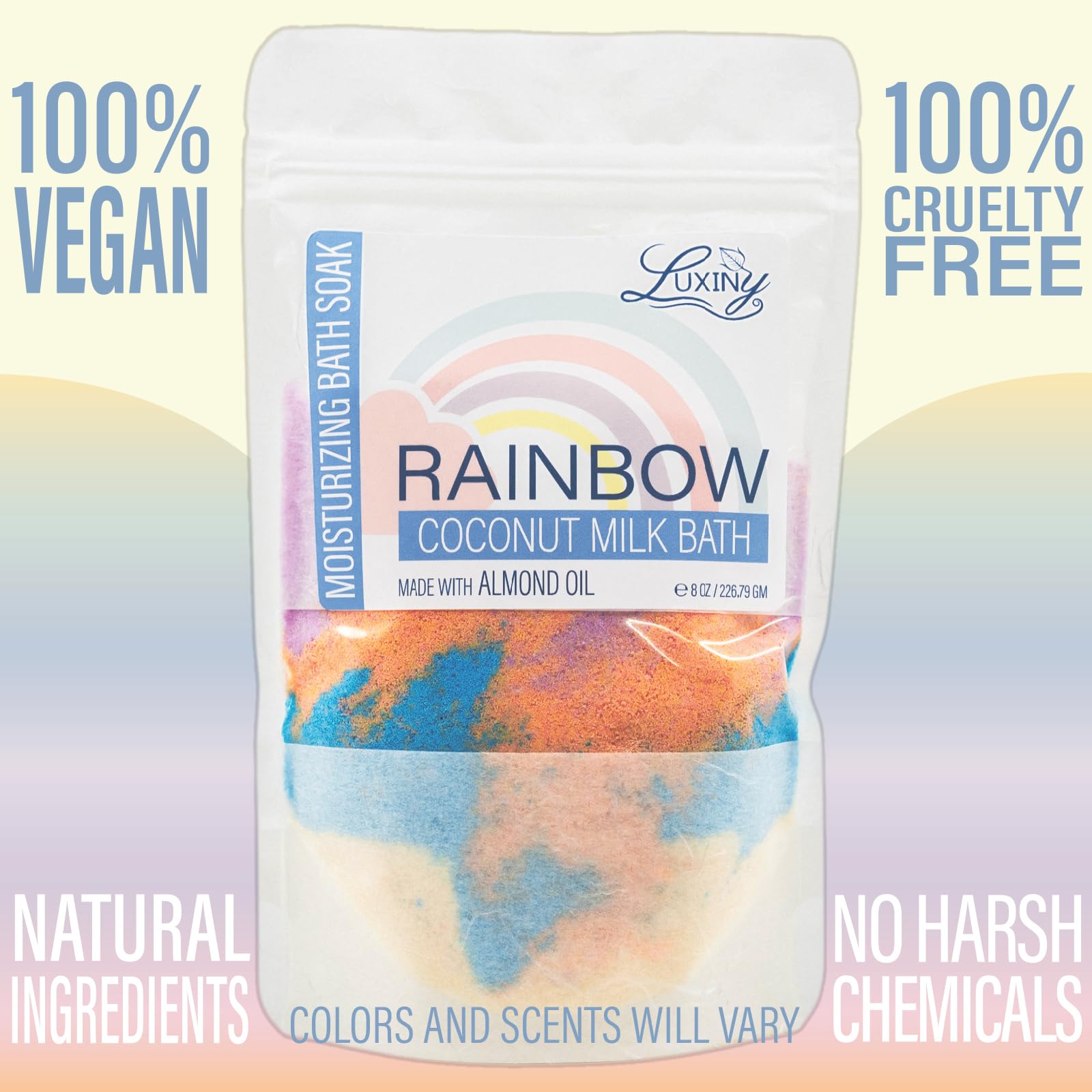 Luxiny Vegan Milk Bath Soak Made with Coconut Milk Powder & Sweet Almond Oil Which Creates A Bath Bomb Dust Soothing Fizz, 8oz (Rainbow)