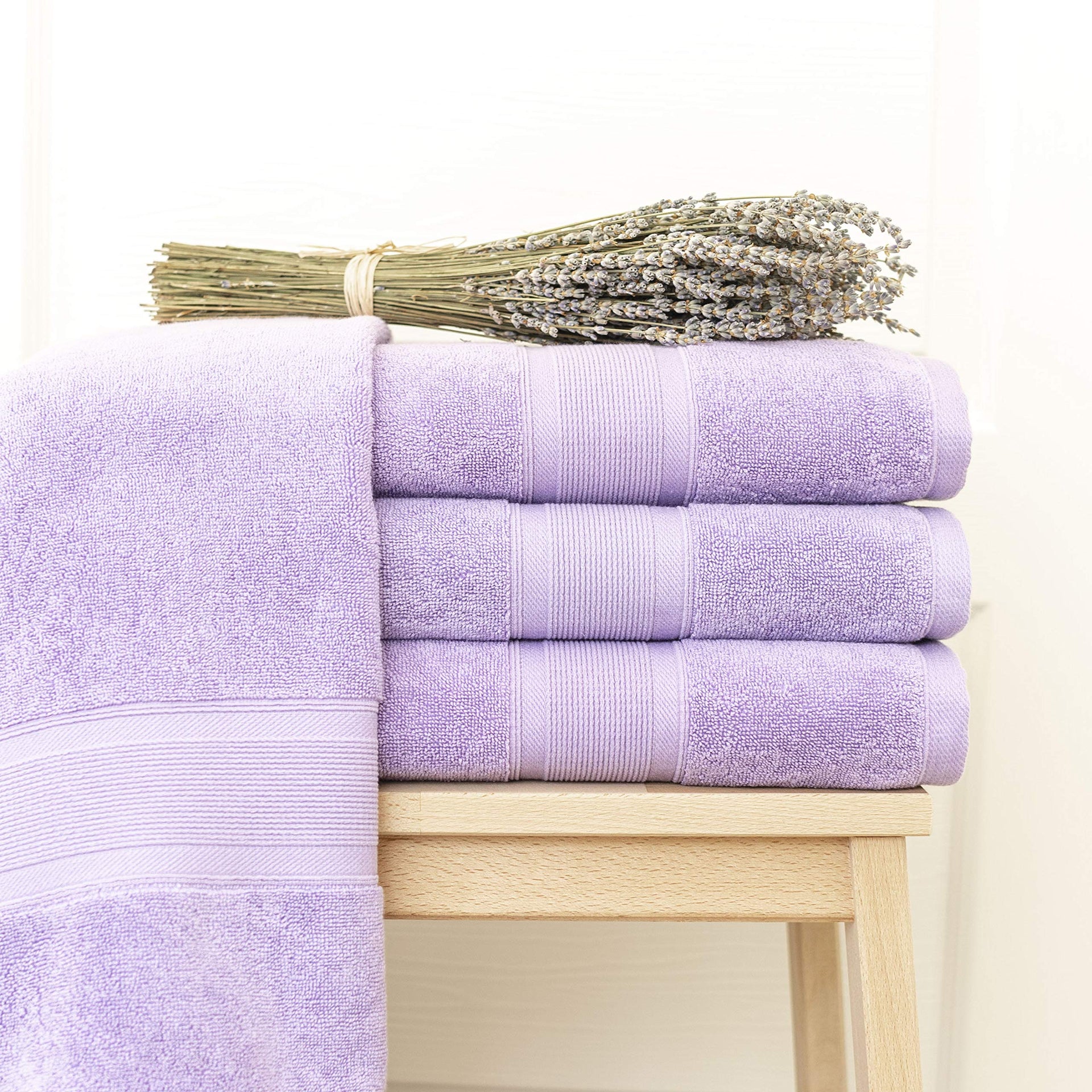 Luzia 8 Piece Bathroom Towel Set - 100% Turkish Cotton, Premium Quality - 2 Bath Towels 2 Hand Towels and 4 Washcloths (Lavender/Purple)