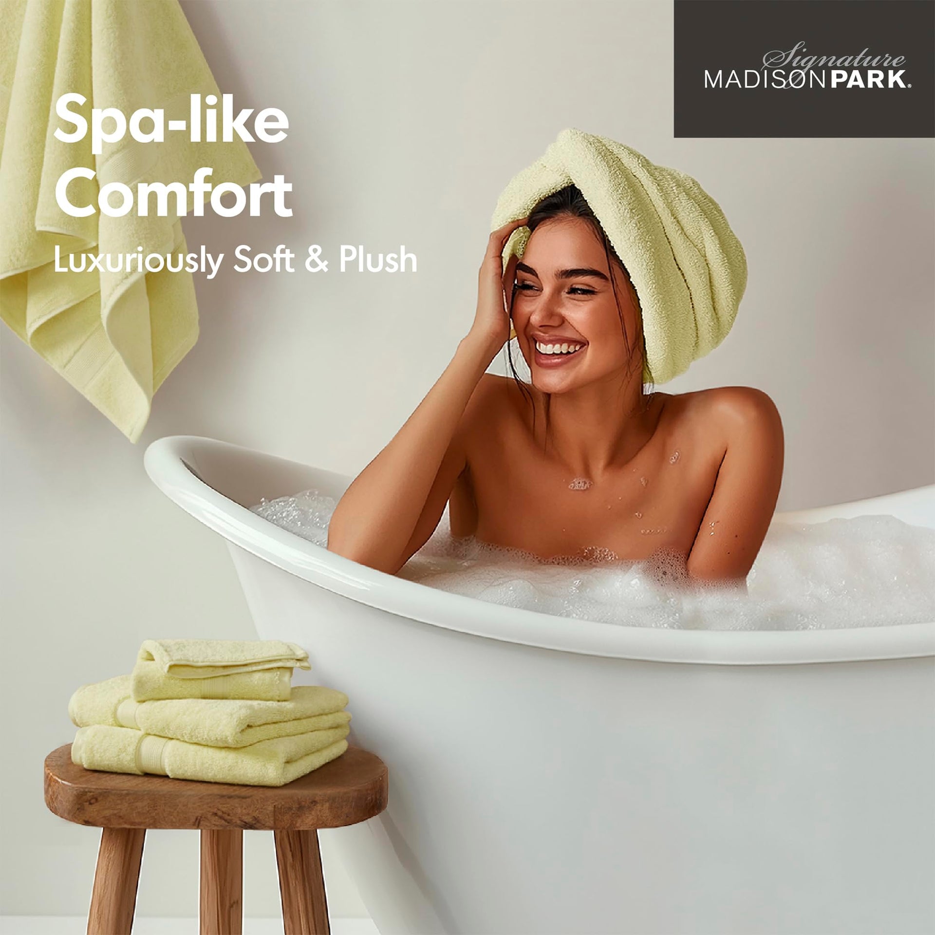 Provide a fresh update to your bathroom with our luxurious Madison Park 800GSM Cotton 8PC Bath Towel Collection. This spa-like quality towel set is made of premium long staple cotton that is highly absorbent and creates a luxuriously soft feel, while the double ply loop construction increases thickness, absorbency, and ensures less lint. In addition, these towels are also made in green by OEKO-TEX certified, meaning they do not include any harmful substances or chemicals while also using sustainable processes and socially responsible working conditions, for the best in quality comfort and wellness. Finished with double-stitched side hems for long lasting durability, these towels are available in a variety of colors; to easily match your decor with a complimenting color or mix and match to create a distinctive style. Set includes: 2 generously oversized 30x54" bath towels, 2 standard 16x28" hand towels, and 4 standard 13x13" wash towels. Coordinate bath sheet set in selected colors, is available and sold separately.