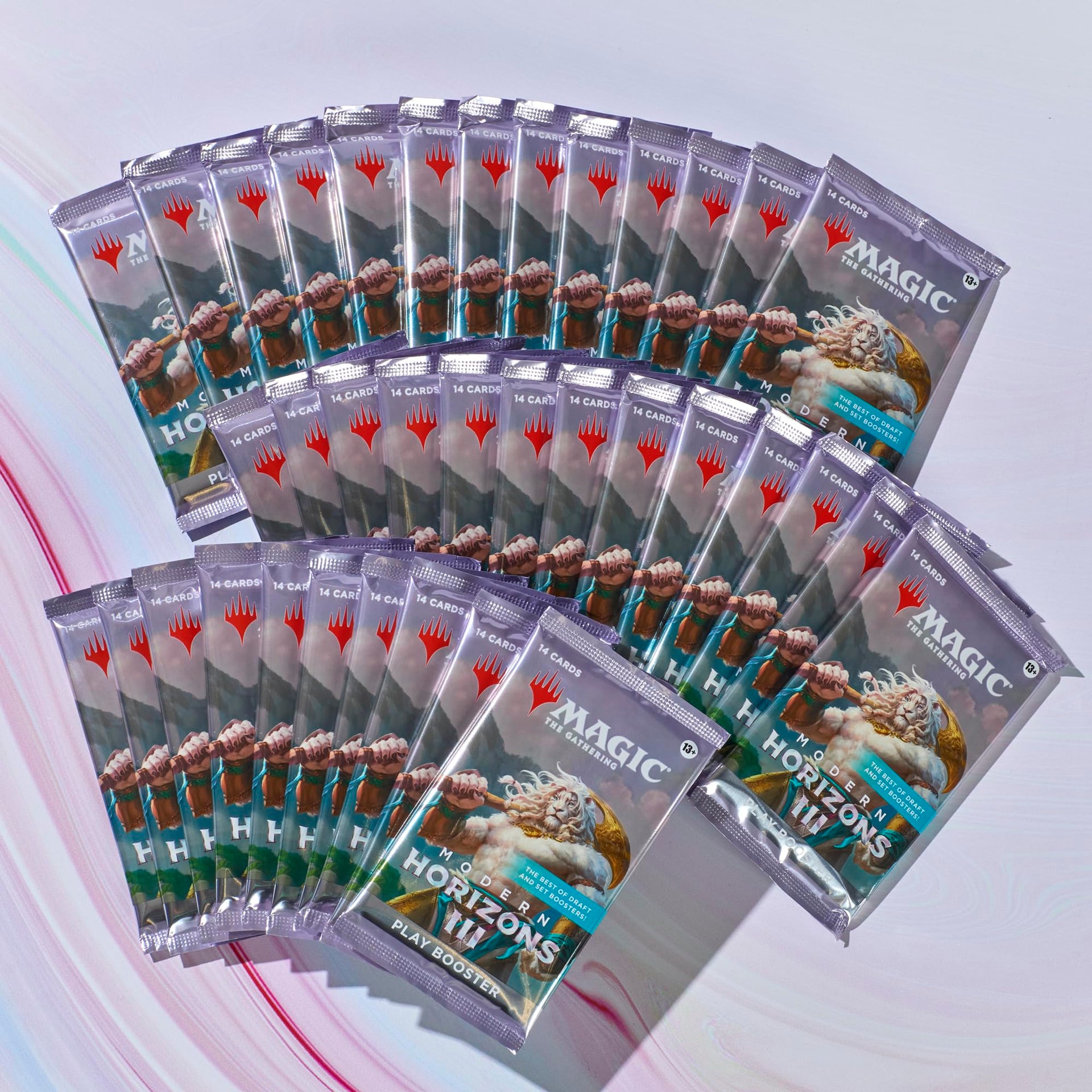 • MODERN MIGHT THAT SHINES BRIGHT-Both powerful and flashy, every MH3 Play Booster includes 1-5 cards of rarity Rare or higher and 1-2 shining Traditional Foil cards