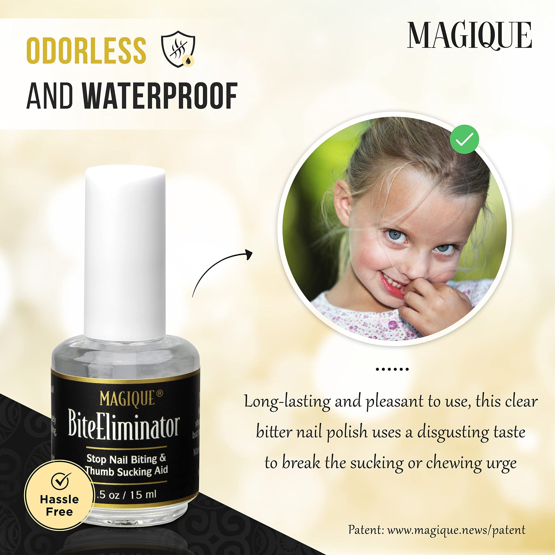 Magique Bite Eliminator – Stop Thumb Sucking & Nail Biting for Kids & Adults – Bitter Nail Polish Treatment – Customizable Strength – 0.5 Fl Oz