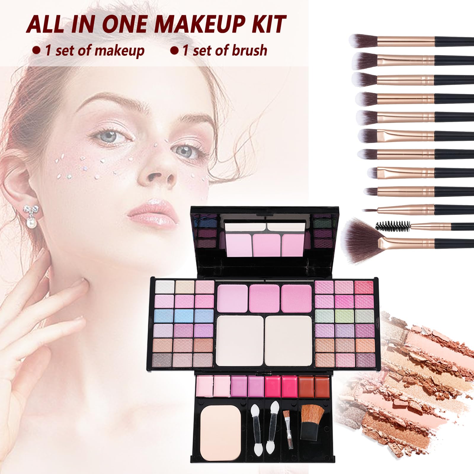 Makeup Kit Eyeshadow Palette for Women Full Gift Kit Girl Kids 49 Colors Makeup Set Combination Eyeshadow Palette with 12pcs Makeup Brushes