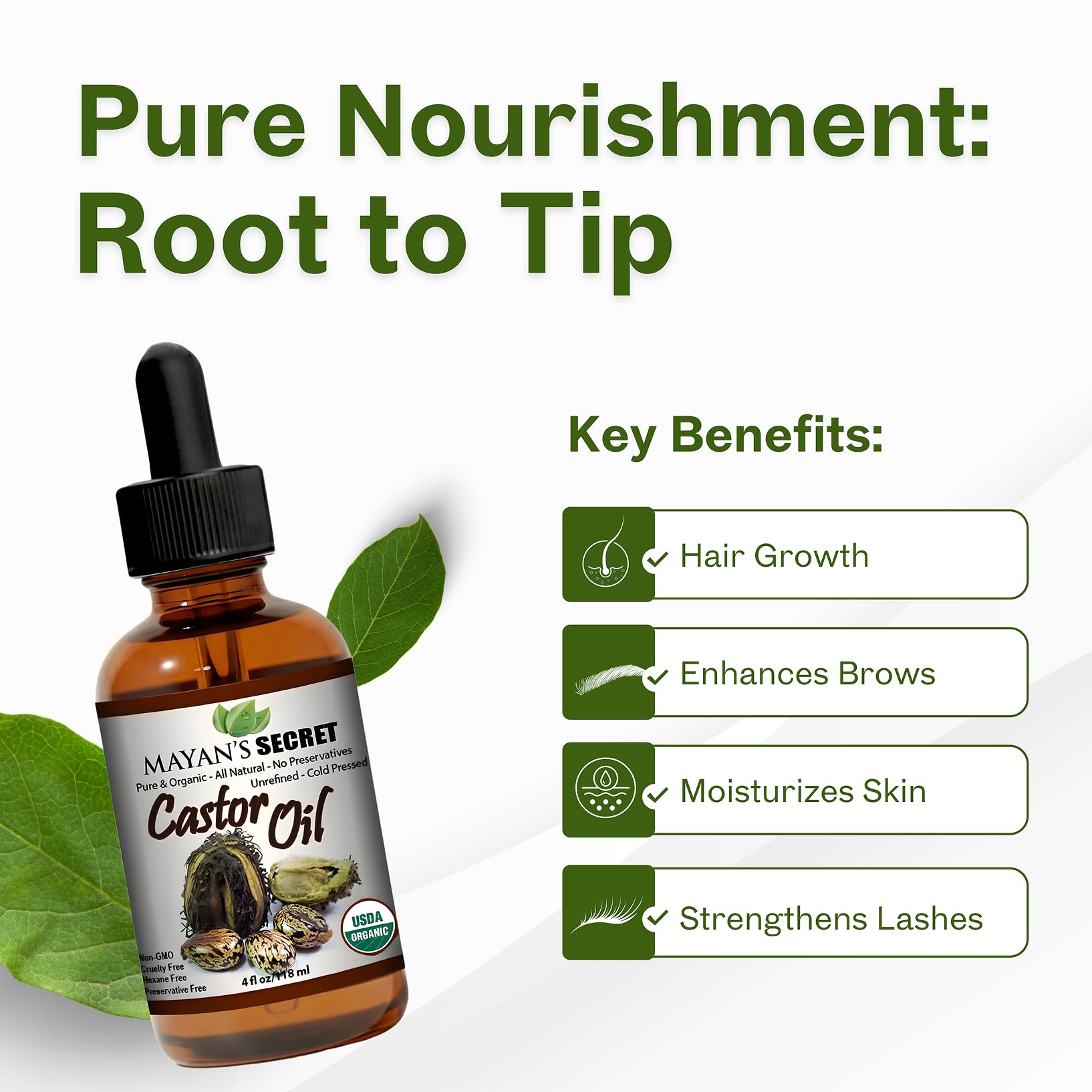 Mayan’s Secret castor oil hexane free cold pressed formula is crafted from premium castor seeds to deliver deep hydration and nourishment for hair, skin, and body. This caster oil organic cold pressed blend is rich in natural fatty acids and nutrients that help strengthen hair, smooth skin, and enhance shine from root to tip. Designed for versatility, it’s perfect for hair growth, moisturizing, and overall self-care. Our organic castor oil hexane free is USDA Certified, vegan, and free from chemicals or solvents. The pure organic castor oil extraction process ensures that every drop retains essential vitamins, antioxidants, and fatty acids for healthy-looking hair and radiant skin. It’s ideal for those who prefer clean, natural ingredients without compromise. Lightweight yet powerful, this organic castrol oil provides long-lasting hydration and soothing care for dry or sensitive skin. As a castrol oil for skin, it restores elasticity, leaving a soft, glowing finish. It also works beautifully as a scalp treatment or eyelash and eyebrow enhancer, delivering visible results and deep nourishment. Each castor oil cold pressed hexane free formula is securely stored in an amber glass bottle to maintain purity and freshness. Mayan’s Secret ensures top quality and sustainability with every batch. Rediscover the natural beauty of simplicity with Mayan’s Secret-organic castor oil hexane free, pure organic castor oil, organic castrol oil, and caster oil organic cold pressed blended into one exceptional castor oil cold pressed organic solution that delivers results you can feel and see.