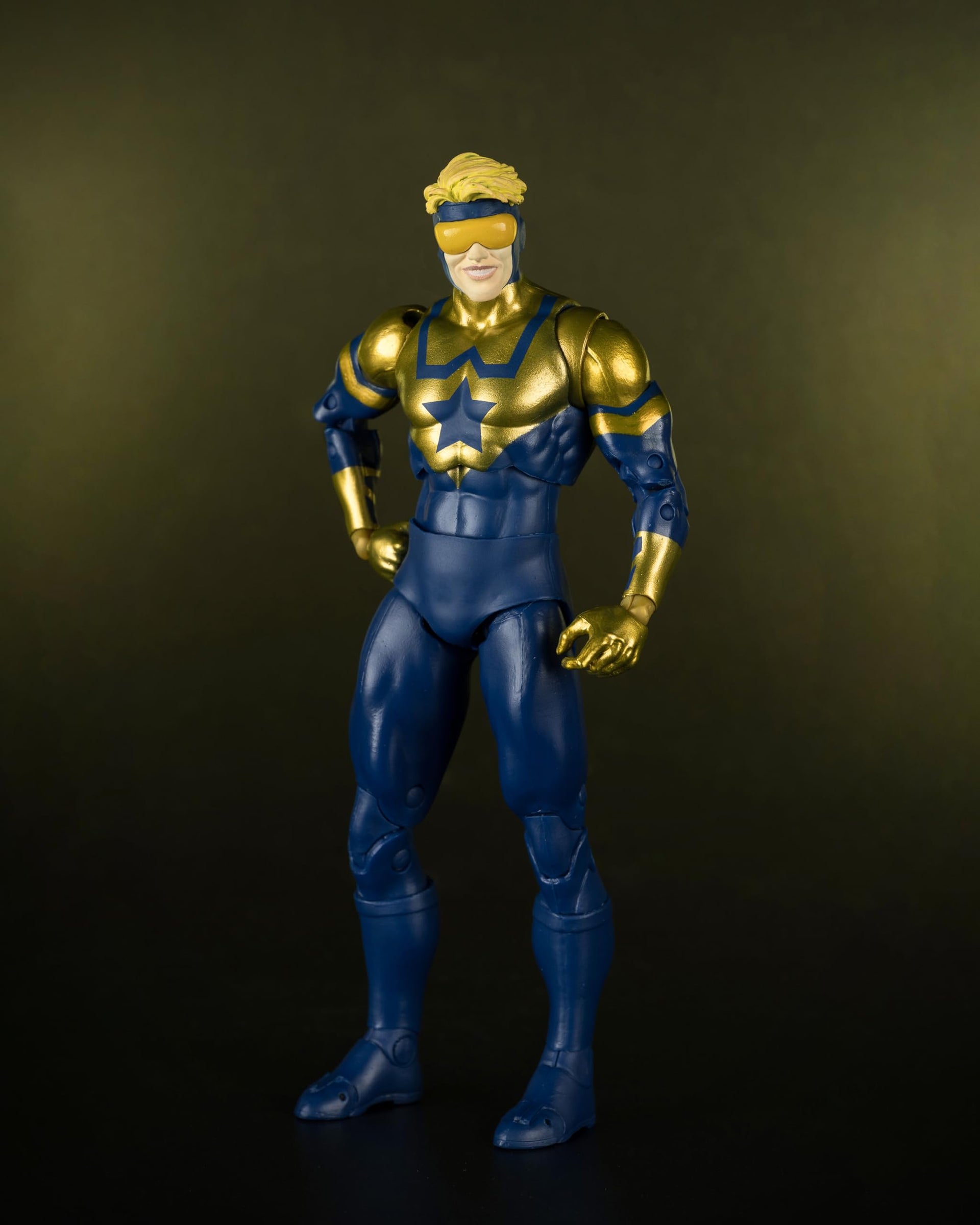 A college football star of the 25th Century who earned the nickname “Booster” on the field. Even though people assured him a professional career of fame and fortune was in his future, he decided he couldn’t wait and wagered on his own games. The scandal ruined his dreams and reputation. Taking a job as a security guard in the Metropolis Space Museum, Mike saw another opportunity after studying the early age of superheroes. With future and alien technology stolen from the museum, and a time machine that was on display, he realized he could not only become a superhero himself in a past era where his criminal history was unknown, but he could also make his good deeds profitable.
