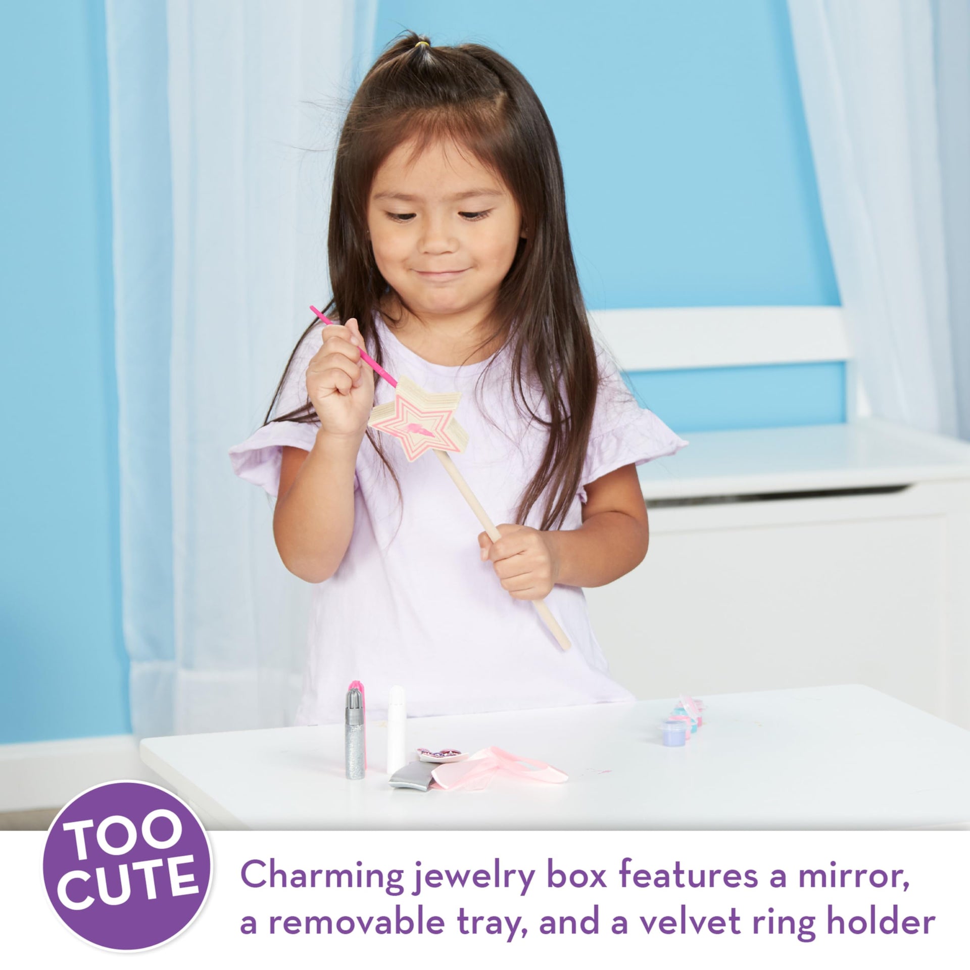 - Includes wooden star, dowel, 2 satin ribbons, 19 gem stickers, 4 pots of paint, paintbrush, 2 glitter glues, and white glue