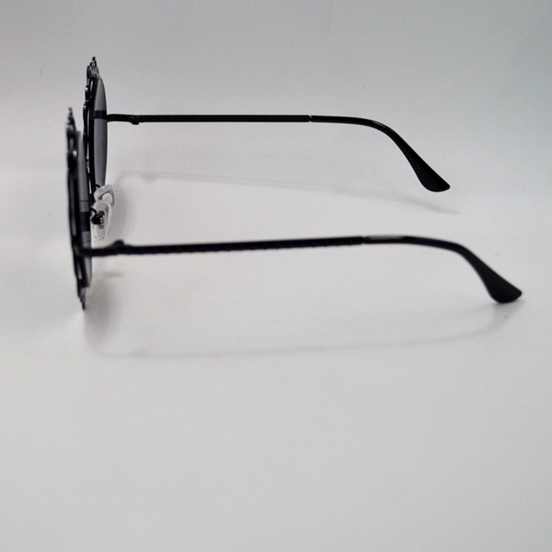 Mily Womens Vintage Hollow Lace Metal Flower Frame Round Sunglasses from (black)