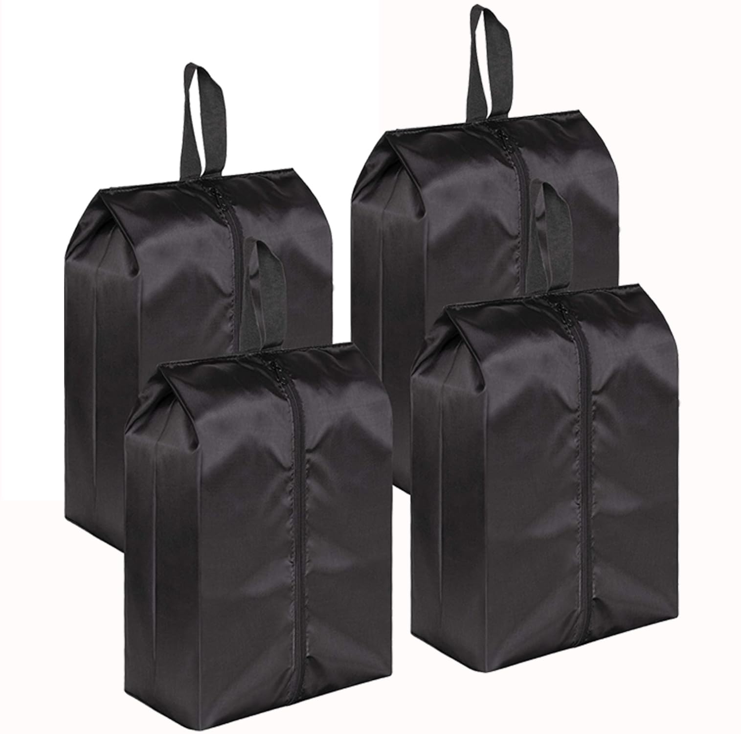 MISSLO Portable Nylon Travel Shoe Bags with Zipper Closure (Pack 4, Black)