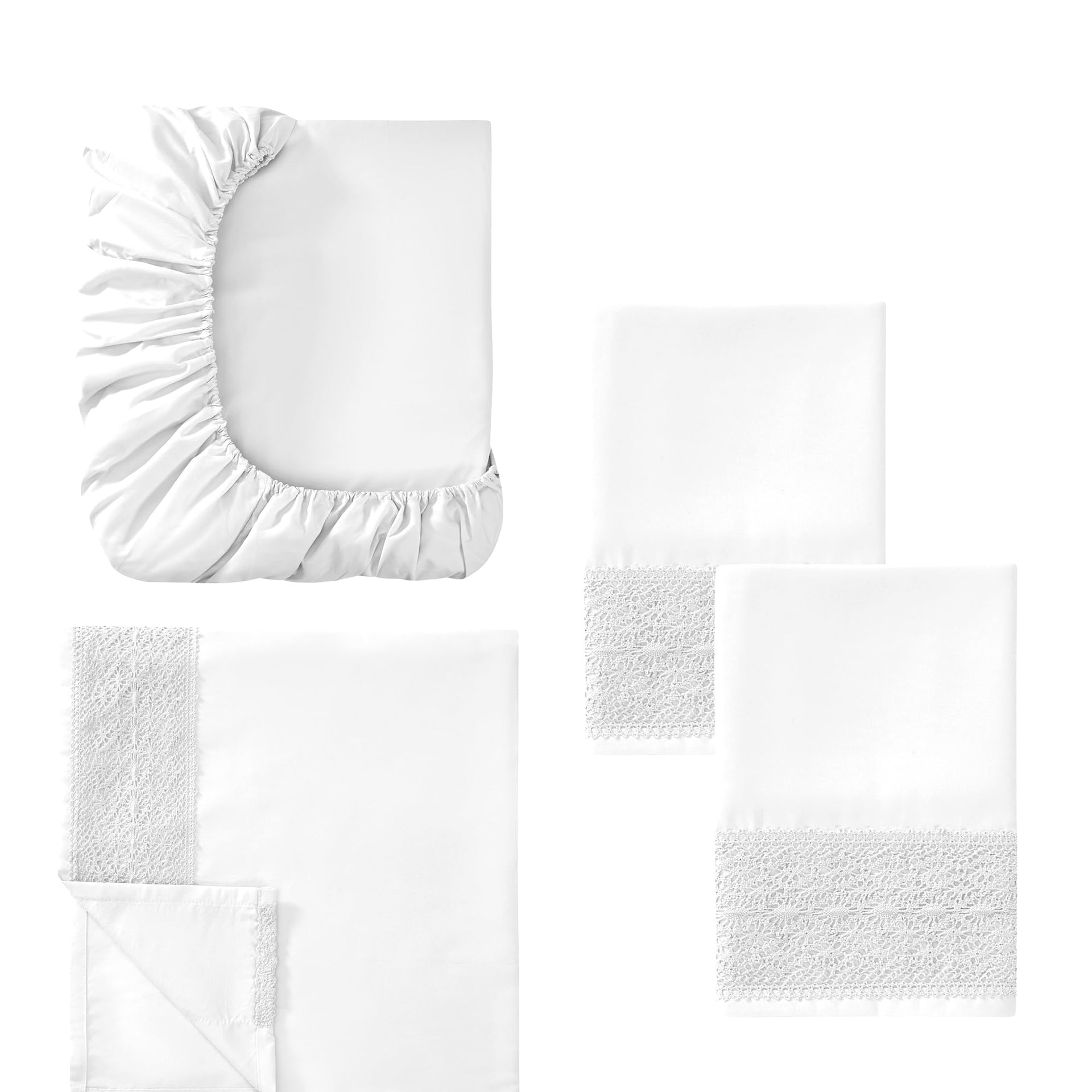 - Elegant Crochet Lace Detail: Upgrade your bedroom décor with a timeless touch - each flat sheet and pillowcase features a beautiful 5" crochet lace hem that adds classic charm and sophistication. The reinforced seams hold up wash after wash, keeping your sheets looking fresh and stylish for years to come.