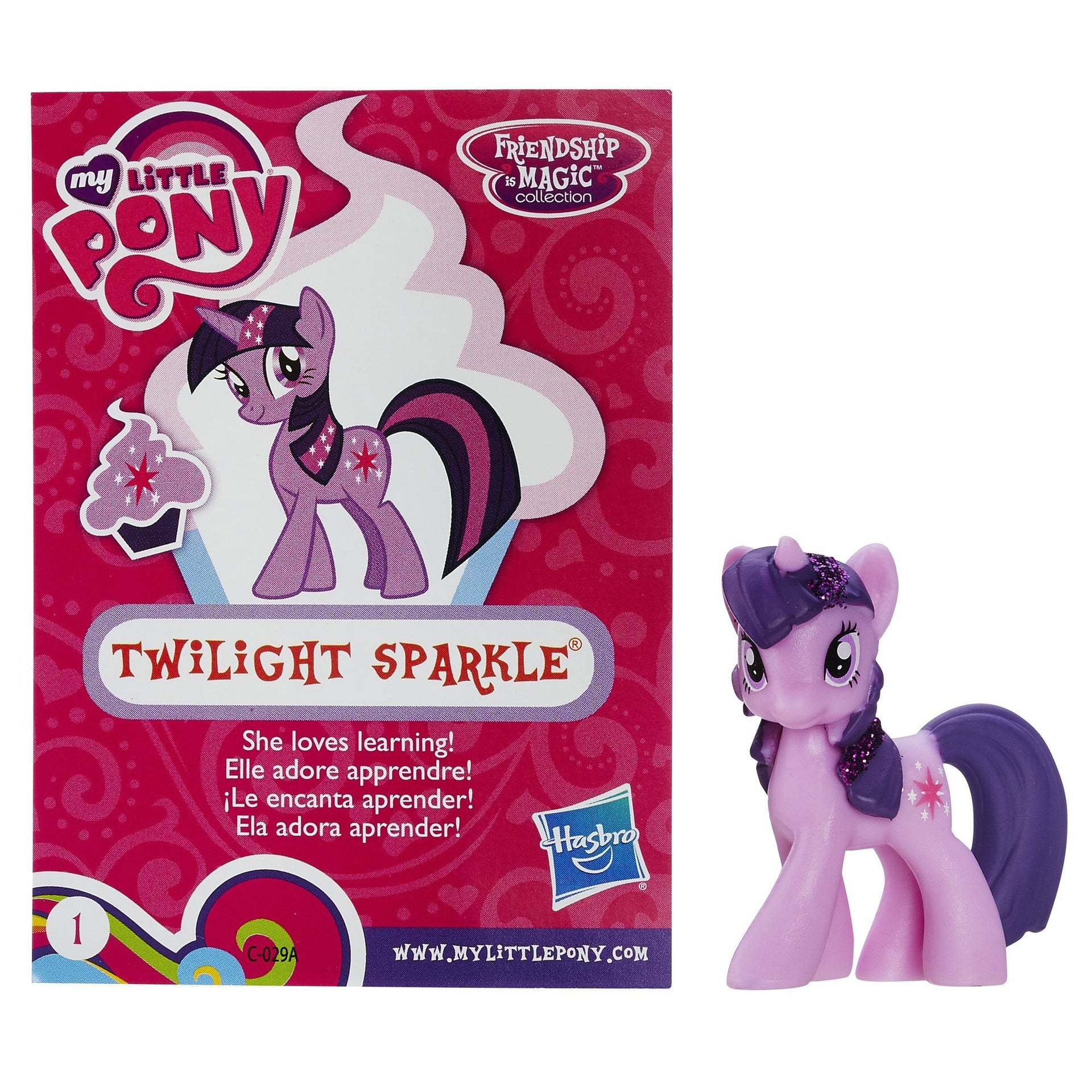 Welcome to the world of My Little Pony, a place filled with the magic of friendship! Meet Twilight Sparkle, Pinkie Pie, Rainbow Dash, Fluttershy, Rarity, and Applejack! These special friends always stick together. Join them for adventures and fun! Explore Ponyville, the royal city of Canterlot, and all of Equestria, where you are sure to meet even more pony friends! My Little Pony toys offer so many ways for little girls to play with their favorite pony friends. Imaginative playsets help girls create the world of My Little Pony at home, while fun pony toys have great features including long, colorful hair for styling and accessories for dress up and play! The My Little Pony brand has been a favorite part of growing up for thirty years and counting! The TV series, My Little Pony: Friendship Is Magic, extends the adventure for fans of all ages to enjoy. My Little Pony and all related characters are trademarks of Hasbro.