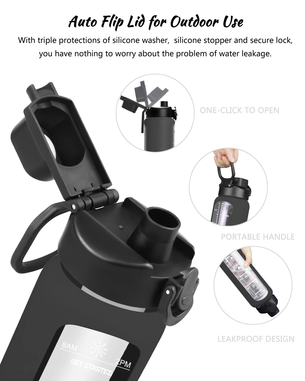 Nefeeko 32 oz Glass Water Bottles with Straw, Time Marker, Motivational 1 Liter BPA FREE Leakproof Reusable Glass Water Bottle with Silicone Sleeve