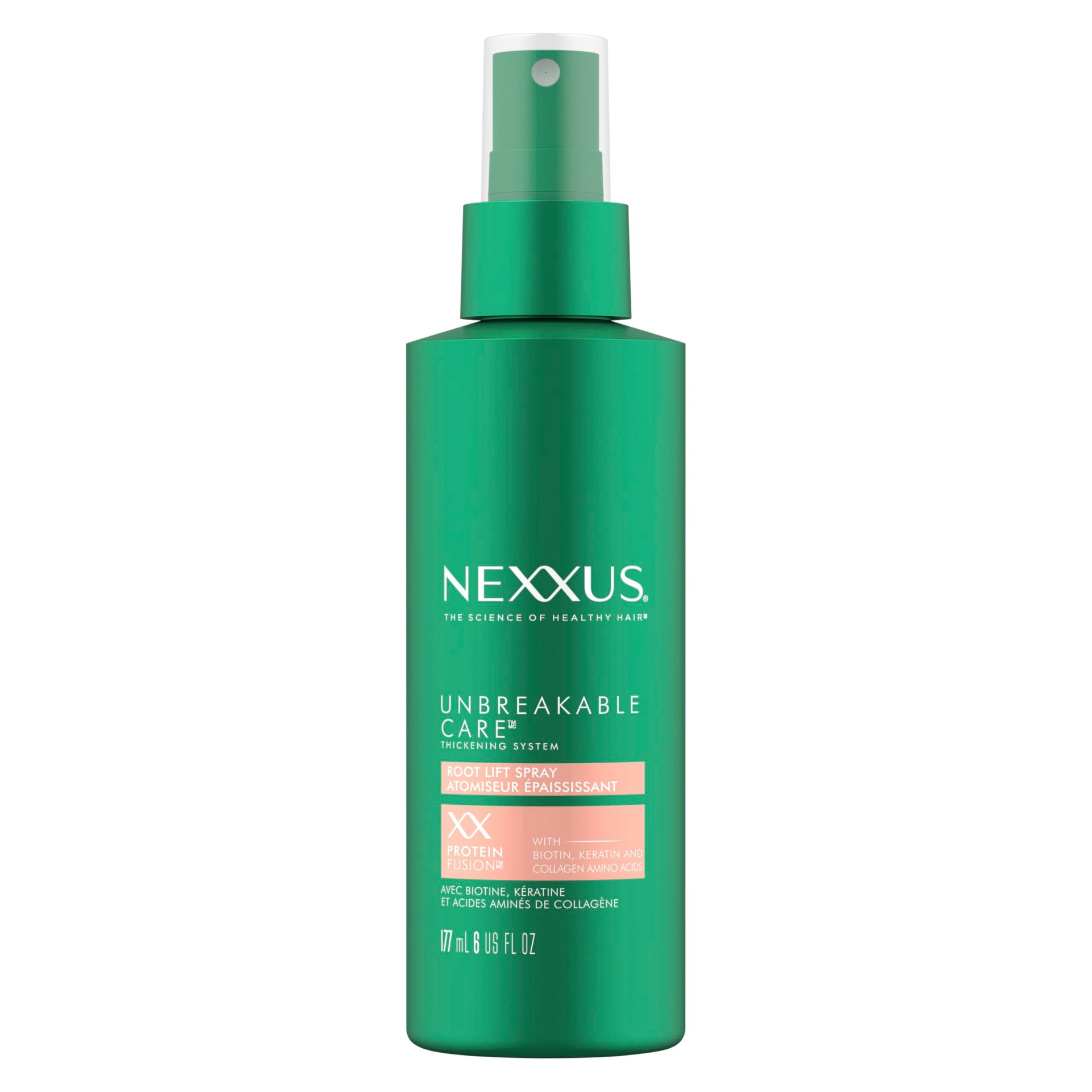 Details: Experience the Unbreakable Care Root Lift Spray by Nexxus. This powerful formula of root thickening spray is your secret weapon for achieving voluminous, full-bodied hair that defies gravity. Powered by cutting-edge science, our root lift spray features an exclusive strand-expanding technology that thickens each individual strand from root to tip, creating lasting volume and bounce that lasts all day. Say goodbye to flat, dull hair and hello to hair that grabs attention with its luxurious thickness and vitality. Formulated with our signature ProteinFusion blend enriched with biotin, keratin, and collagen amino acids, this spray strengthens and protects your hair from within, ensuring it stays healthy and resilient against daily styling and environmental stress. How to use: It's simple to apply. Section damp hair and spray directly onto the scalp and throughout the hair for overall fullness. Gently massage into the scalp and style as usual. We recommend using this root lift spray in combination with our Unbreakable Care shampoo and conditioner for even better results. Trust Nexxus, where salon expertise meets scientific innovation. Our Unbreakable Care Collection is designed to help retain hair by reducing breakage while maximizing fullness, giving you the confidence to enjoy your thick, beautiful hair every day. Elevate your haircare routine with Nexxus Unbreakable Care Spray and unleash the full potential of your hair.
